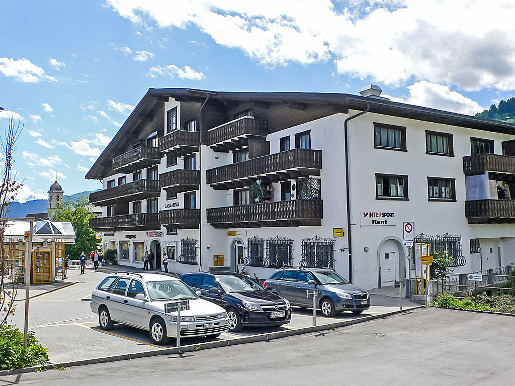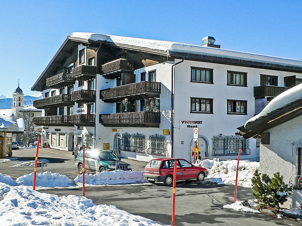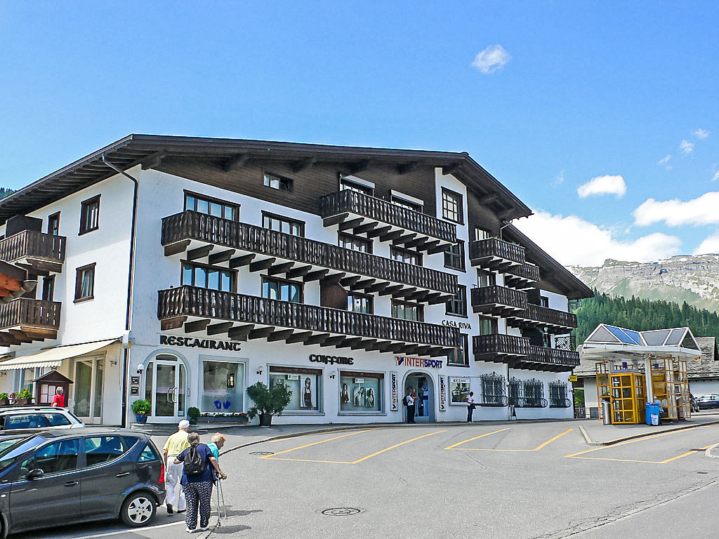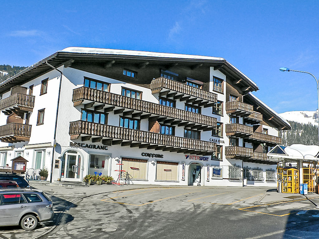 Laax Dorf: Mehrfamilienhaus "La Riva". Im Ortszentrum von Laax, zentrale, sonnige Lage, 50 m vom See, 1.5 km vom Skigebiet. Im Hause: Skiraum, Zentralheizung, Waschmaschine, Wäschetrockner (zur Mitbenutzung, extra). Zufahrt bis zum Haus. Gemeinschaftsgarage. Einkaufsgeschäft, Lebensmittelgeschäft 200 m, Restaurant 500 m, Bushaltestelle 10 m, Hallenbad 350 m, See Caumasee 4.5 km. Golfplatz (18 Loch) 5 km, Luftseilbahn 1.5 km, Skilift 350 m, Skisportanlagen 1.5 km, Skiverleih 1.5 km, Skibushaltestelle 10 m, Skischule 1.5 km, Kinderskischule 350 m, Schlittelbahn 1.5 km, Langlaufloipe 500 m, Eisfeld 350 m, Kinderspielplatz 50 m. Nahe gelegene Sehenswürdigkeiten: Rheinschlucht 5 km. Bekannte Seen in der Umgebung sind gut erreichbar: Caumasee 4.5 km, Crestasee 10 km. Kinderskilift 350 m. Skisportanlagen der "Alpenarena": Flims 4.5 km, Falera 1.5 km, Laax-Murschetg 1.6 km. Zentrum Flims mit weiteren Einkaufs- und Unterhaltungsmöglichkeiten und dem bekannten Seebad "Caumasee" 4.5 km. Das Mehrfamilienhaus steht unmittelbar neben dem Laaxer-See. Kinderspielplatz in nächster Nähe.