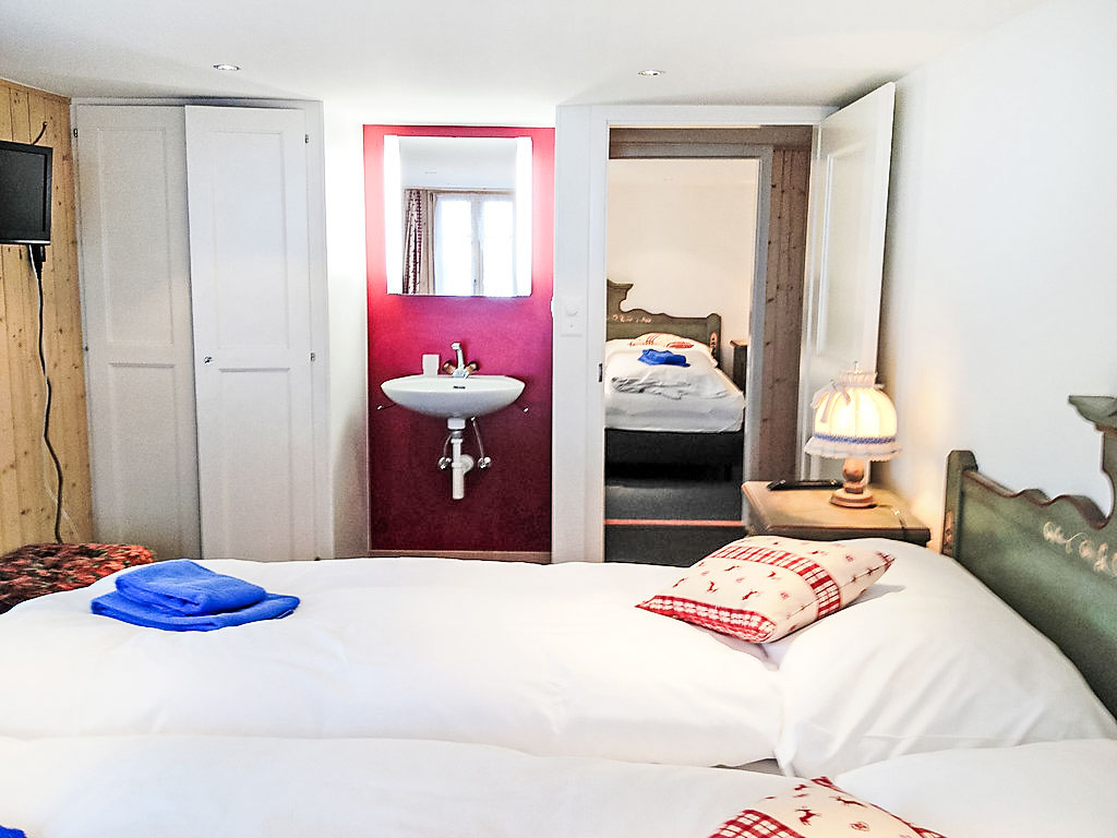 2-Zimmer-Wohnung 70 m2 im 1. Stock. Zweckmässig und gemütlich eingerichtet: 1 Zimmer, Deckenhöhe 190 - 200 cm mit 1 Doppelbett (2 x 90 cm, Länge 200 cm), Kabel-TV (Flachbildschirm). Ausgang zum Balkon. 1 Zimmer mit 1 Doppelbett (2 x 90 cm, Länge 200 cm). Wohnküche (Backofen, Toaster, Wasserkocher, elektrische Kaffeemaschine). Dusche/WC. Balkon, Südlage. Balkonmöbel. Herrliche Sicht auf die Berge und Eigernordwand. Zur Verfügung: Haartrockner. Internet (Wireless LAN, gratis). Parkplatz beim Haus. Bitte beachten: Wohnung auf Strassenseite. Nichtraucher-Unterkunft. Maximal 1 Haustier/Hund erlaubt. Feuerlöscher.