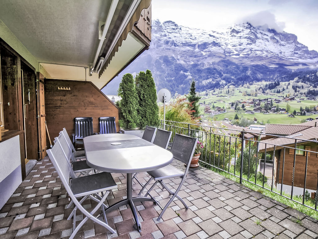 2-Zimmer-Wohnung 42 m2, im Erdgeschoss, Südwestlage. Modern und gemütlich eingerichtet: Wohn-/Schlafzimmer mit 1 Doppeldiwanbett (140 cm, Länge 200 cm), Internationale TV-Sender, Radio und CD. Ausgang zum Gartensitzplatz, Richtung Süden und Richtung Westen. 1 Zimmer mit 1 franz. Bett (140 cm, Länge 200 cm). Offene Küche (Backofen, Geschirrspüler, 4 Glaskeramikherd Platten, Toaster, Wasserkocher, Mikrowelle, elektrische Kaffeemaschine, Kapseln für die Kaffeemaschine (Nespresso) extra, Racletteofen, Fondue Set (Käse)). Dusche/WC. Fussbodenheizung. Parkettböden. Gartensitzplatz, Südlage und Westlage. Balkonmöbel. Sehr schöne Sicht auf die Berge, die Landschaft und Eigernordwand. Zur Verfügung: Haartrockner. Internet (Wireless LAN, gratis). Parkplatz Nr. 22. Bitte beachten: Nichtraucher-Unterkunft. 1 Haustier/Hund erlaubt. Feuerlöscher.