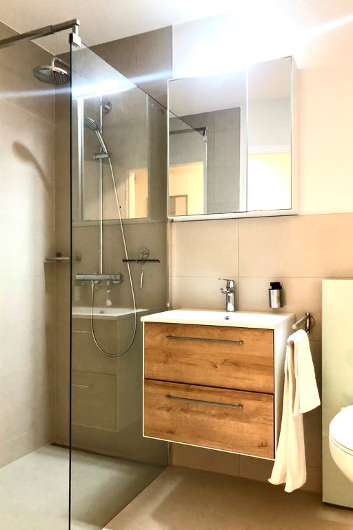 1-Zimmer-Wohnung 43 m2 im 2. Stock. Vollständig renoviert im Jahre 2021, komfortabel und gemütlich eingerichtet: Wohn-/Esszimmer mit 1 Doppelbett (160 cm, Länge 200 cm), Kabel-TV (Flachbildschirm). Ausgang zum Balkon. Küche (Backofen, Geschirrspüler, 4 Glaskeramikherd Platten, elektrische Kaffeemaschine). Dusche/WC. Balkon, Südlage. Balkonmöbel. Schöne Sicht auf die Berge, das Tal und die Ortschaft. Zur Verfügung: Haartrockner. Internet (Wireless LAN, gratis). Bitte beachten: Nichtraucher-Unterkunft.