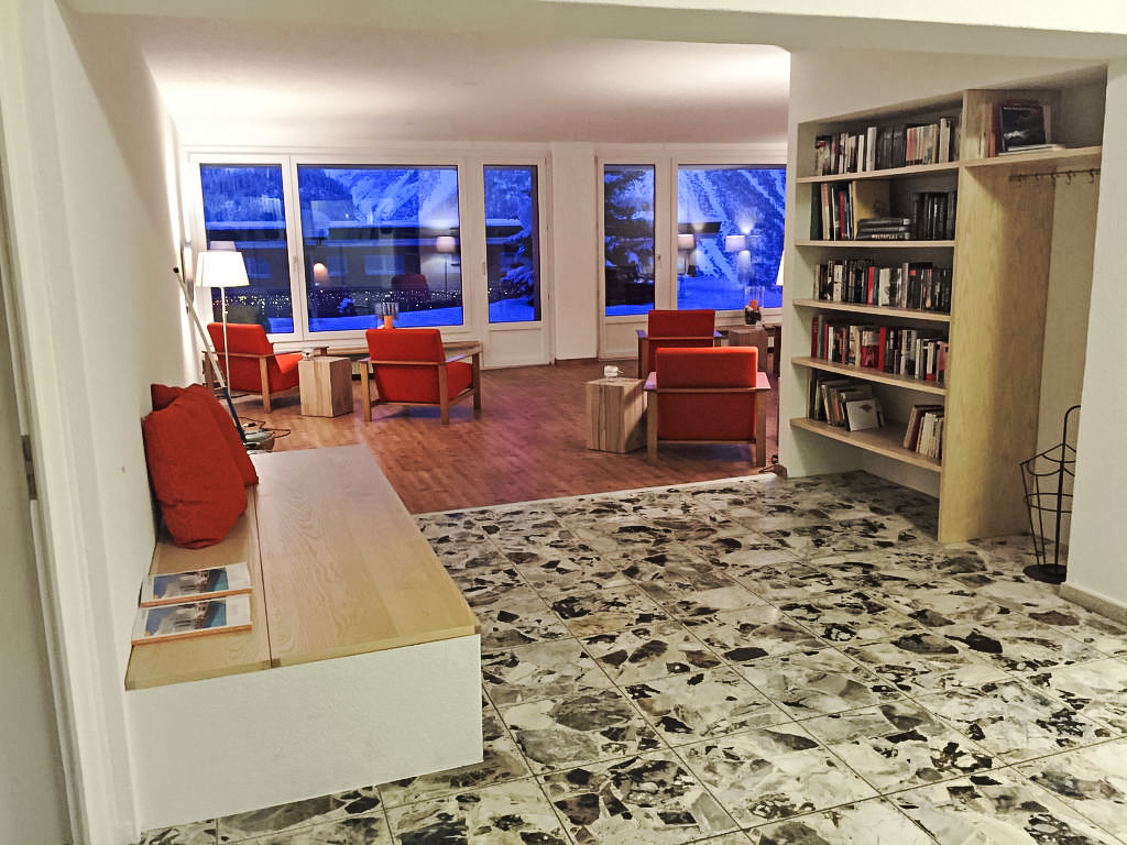 Appartementhaus "Promenade (Utoring)". Im Ort, 500 m vom Zentrum, ruhige Lage. Im Hause: Aufenthaltsraum, Tischtennis, Kiosk, Fahrstuhl, Skiraum, Zentralheizung, Waschmaschine (zur Mitbenutzung). Zufahrt bis zum Haus (Bergstrasse). Im Winter bitte Schneeketten mitbringen, im Winter 4x4 empfohlen. Parkplatz (beschränkte Anzahl, extra) beim Haus, Gemeinschaftsgarage (extra), öffentliches Parkhaus in 800 m. Einkaufsgeschäft 500 m. Bergbahn 500 m. Hauslieferdienst möglich. Schöne Wanderwege direkt vor dem Haus. Achtung: beschränkte Anzahl Parkmöglichkeiten! Parkplatz oder Garagenplatz müssen zwingend vorgängig beim Schlüsselhalter reserviert werden: Parkplatz CHF 5.00/Tag, gedeckter Parkplatz CHF 8.00/Tag, Garagenplatz CHF 16.00/Tag, zahlbar vor Ort. Zweckmässig eingerichtete Appartements mit Sat-TV (im Mietpreis inbegriffen, ausser bei Typ 10 und 12 CHF 40.00/Woche). Aufenthaltsraum mit Internetanschluss (WiFi). Skiabonnements sind an der Rezeption erhältlich.