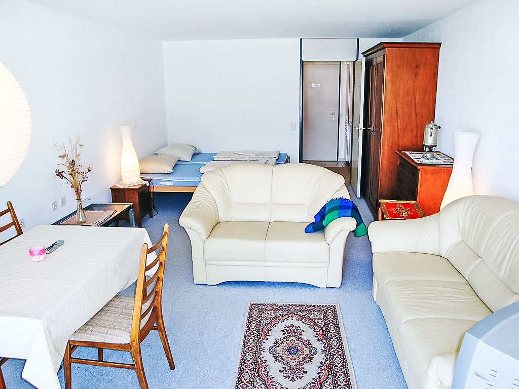 Appartementhaus "Acletta (Utoring)", umgeben von Bäumen und Wiesen. Oberhalb von Disentis, im Ort, 2 km vom Zentrum, ruhige, sonnige Lage am Hang. Zur Mitbenutzung: Hallenbad (24 m2, 170 cm tief). Kinderspielplatz. Im Hause: Empfang, Aufenthaltsraum, Sauna (extra). Tischtennis, Tischfussball, Fahrstuhl, Skiraum, Zentralheizung, Waschmaschine, Wäschetrockner (zur Mitbenutzung, extra). Brötchenservice und Getränkeservice (extra). Zufahrt bis zum Haus (Bergstrasse). Gemeinschaftsgarage. Maße: Höhe 190 cm. Einkaufsgeschäft 300 m, Restaurant 200 m, Bahnstation "Disentis" 2 km. Luftseilbahn, Bergbahn 300 m, Skibushaltestelle 10 m, Skischule 300 m. Bitte beachten: In diesem Haus sind weitere Ferienwohnungen mietbar. Alle Häuser/Wohnungen sind individuell eingerichtet. Kinderskischule in der Nähe des Hauses. Haus und Luftseilbahn sind auf Skiern erreichbar. Internetanschluss DSL/WIFI in allen Wohnungen (gratis). Gratis: 1 Garagenplatz (max. Höhe 1.90 m). Extra: CHF 20.00/Woche für 1 zusätzlichen Garagenplatz. Im Sommer Gratis Benutzung von Bergbahnen, Bahn, Busse, etc. mit persönlicher Gästekarte. Öffnungszeiten Reception. Mo.-Fr. 08:30-09:30 und 16:30-17:30 Uhr, Samstag 08:30-09:30 Uhr und 16:00-17:30 Uhr Mittwoch und Sonntag geschlossen.