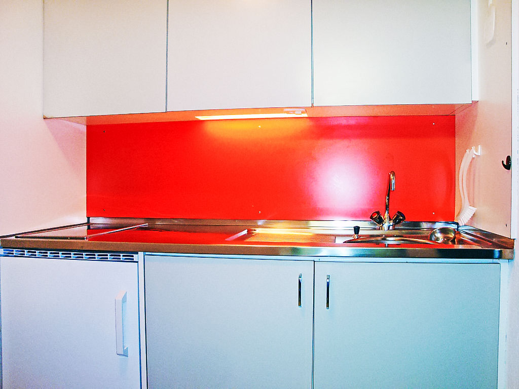 "Apt B 013", 1-Zimmer-Wohnung 39 m2, im Erdgeschoss. Einfach und zweckmässig eingerichtet: Wohn-/Esszimmer mit 2 Betten, Kabel-TV und Radio. Kochnische im Eingang). Bad/WC. Gartensitzplatz, Südlage. Zur Verfügung: Internet (Wireless LAN, gratis). Sehr schöne Sicht auf den Medelsergletscher.