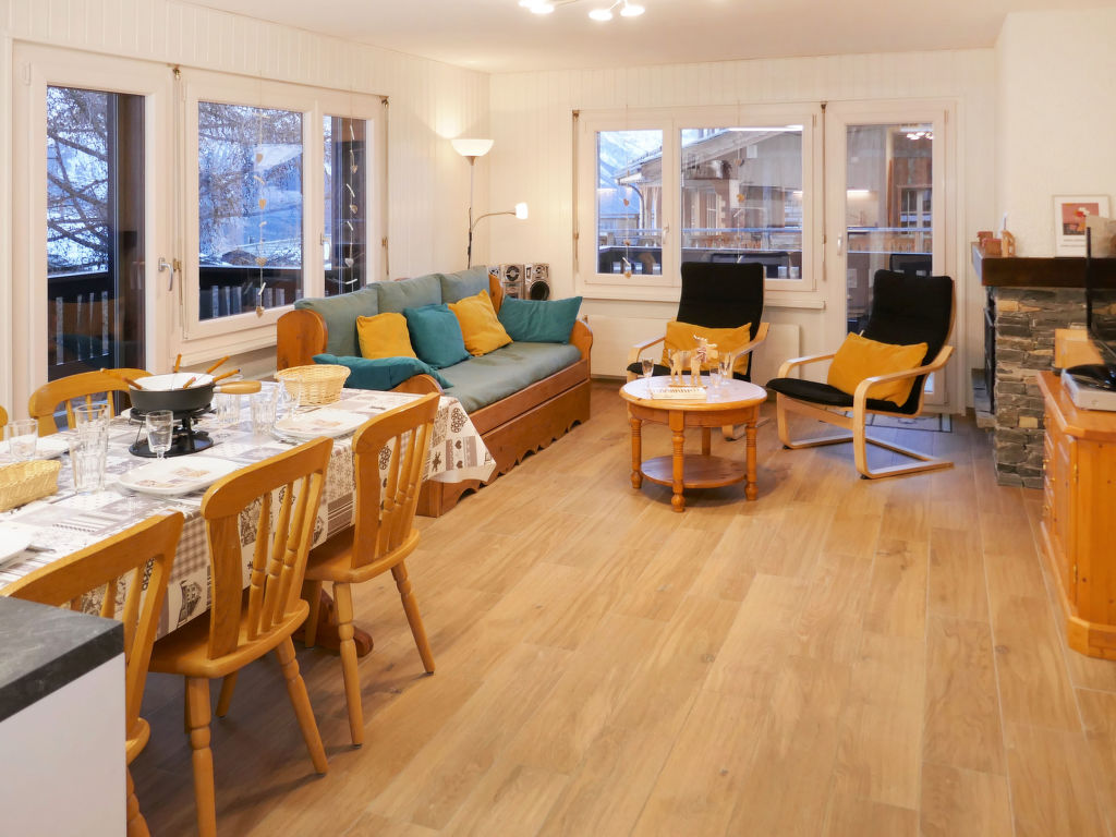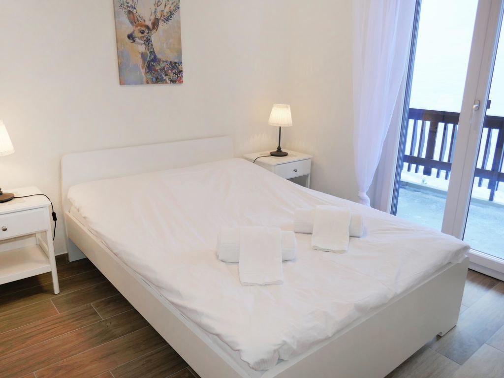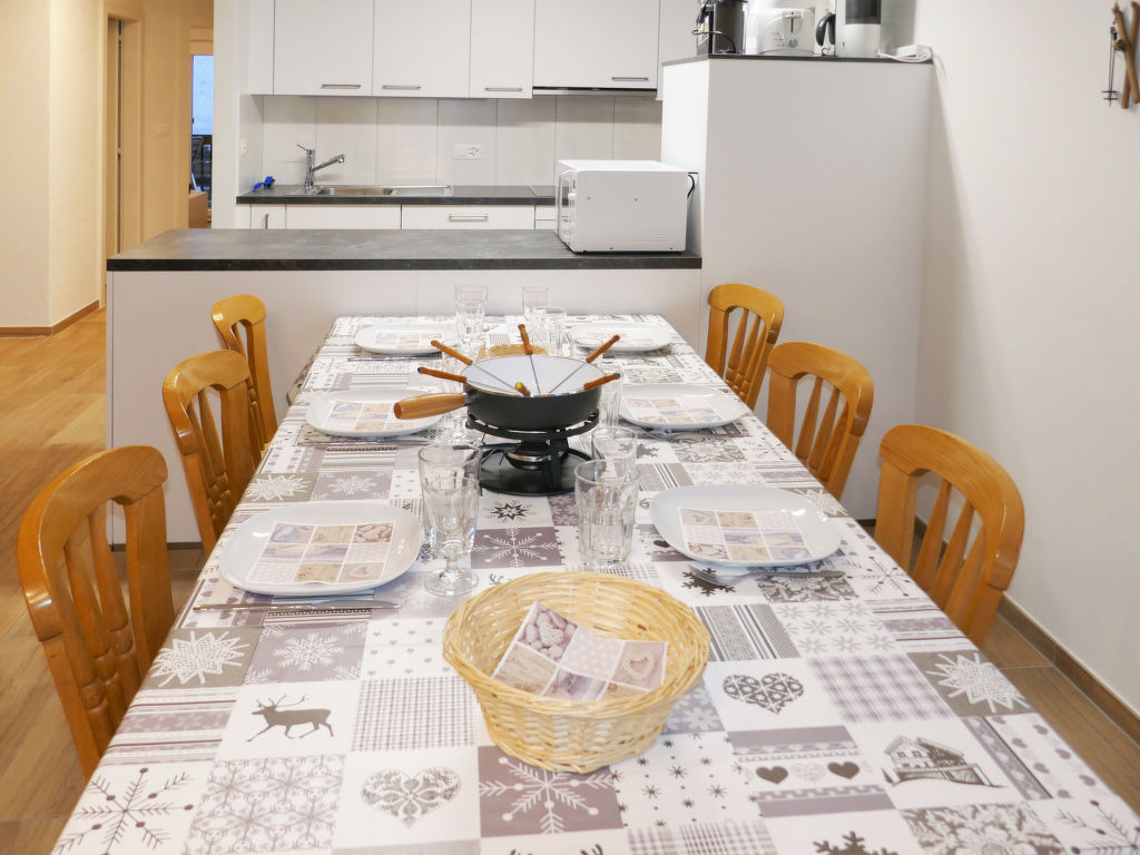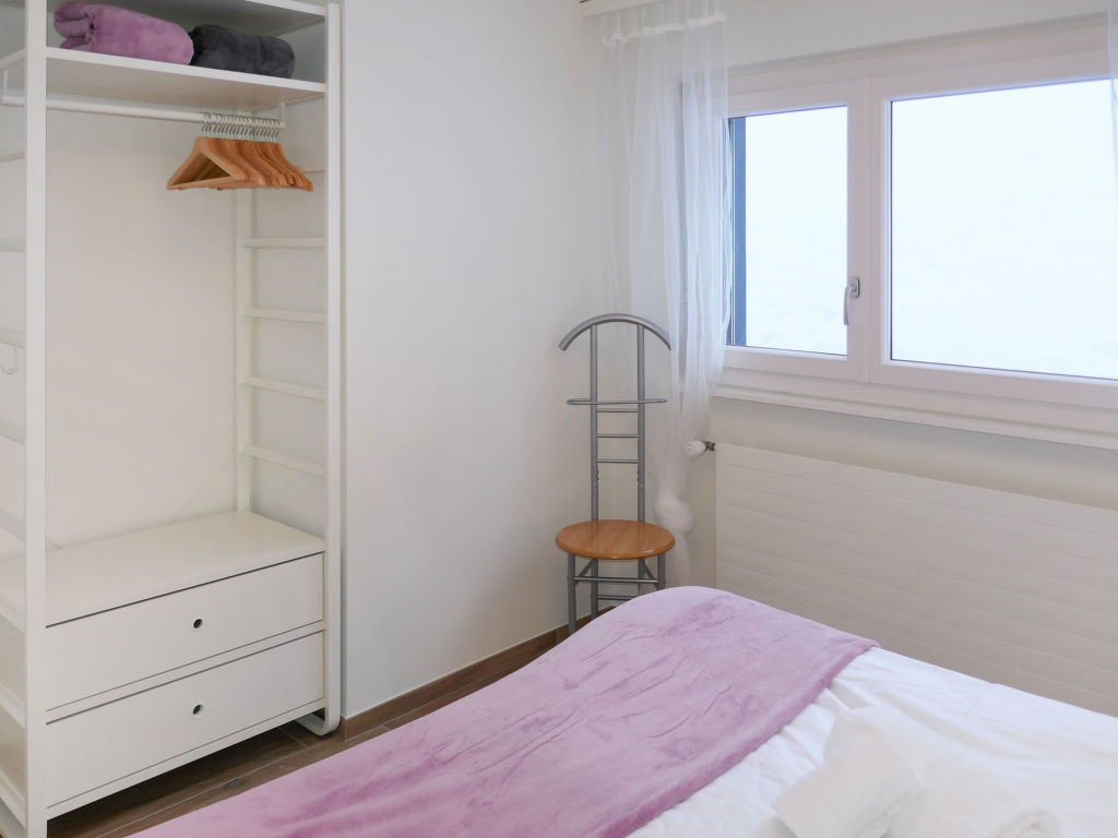 "Eden Roc 56", 3-Zimmer-Wohnung 73 m2 im 2. Stock. Vollständig renoviert im Jahre 2019: Wohn-/Esszimmer mit 1 Doppeldiwanbett (2 x 80 cm, Länge 190 cm), offenem Kamin, Kabel-TV, Stereoanlage und DVD. 1 Zimmer mit 1 Doppelbett (2 x 90 cm, Länge 190 cm). 1 Zimmer mit 1 franz. Bett (140 cm, Länge 200 cm). Offene Küche (Backofen, Geschirrspüler, 4 Induktionskochplatten, Mikrowelle, elektrische Kaffeemaschine, Kapseln für die Kaffeemaschine (Nespresso) extra, Racletteofen, Fondue Set (Chinoise)). Bad/WC, Dusche/WC. Balkon, Südlage Balkon, Westlage und Nordlage. Balkonmöbel. Zur Verfügung: Kinderhochstuhl, Babybett, Haartrockner. Internet (Wireless LAN, gratis). Bitte beachten: Nichtraucher-Unterkunft.