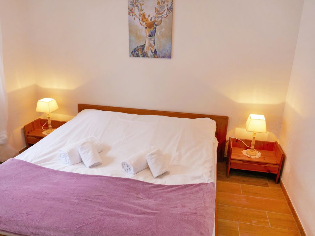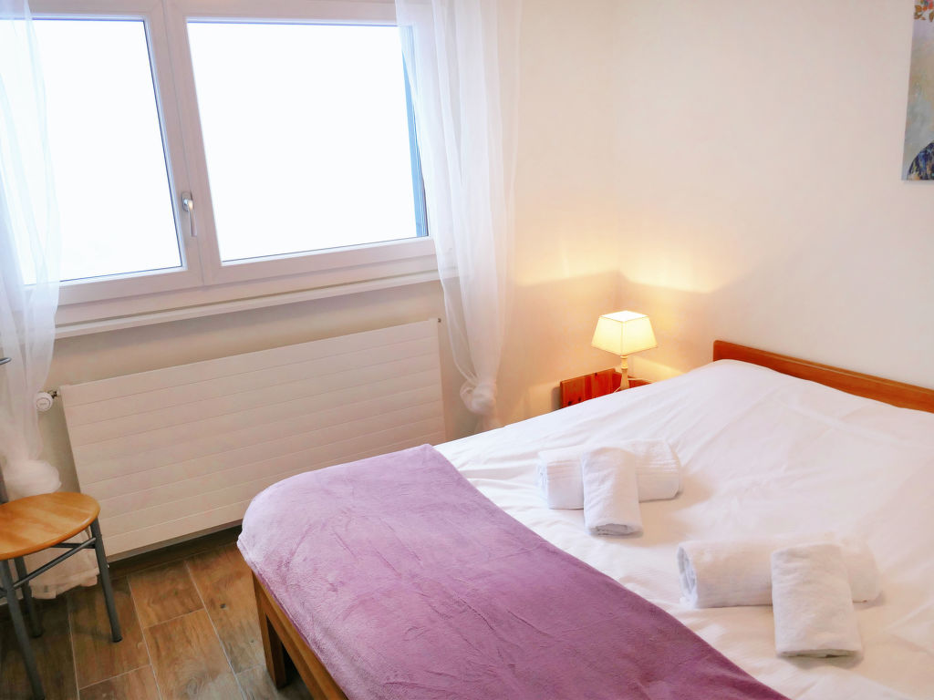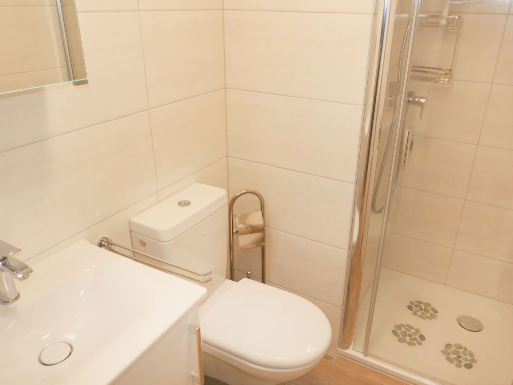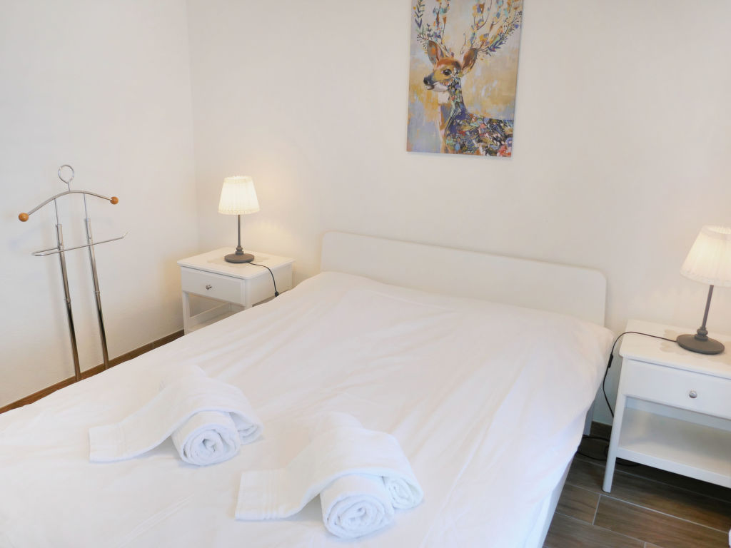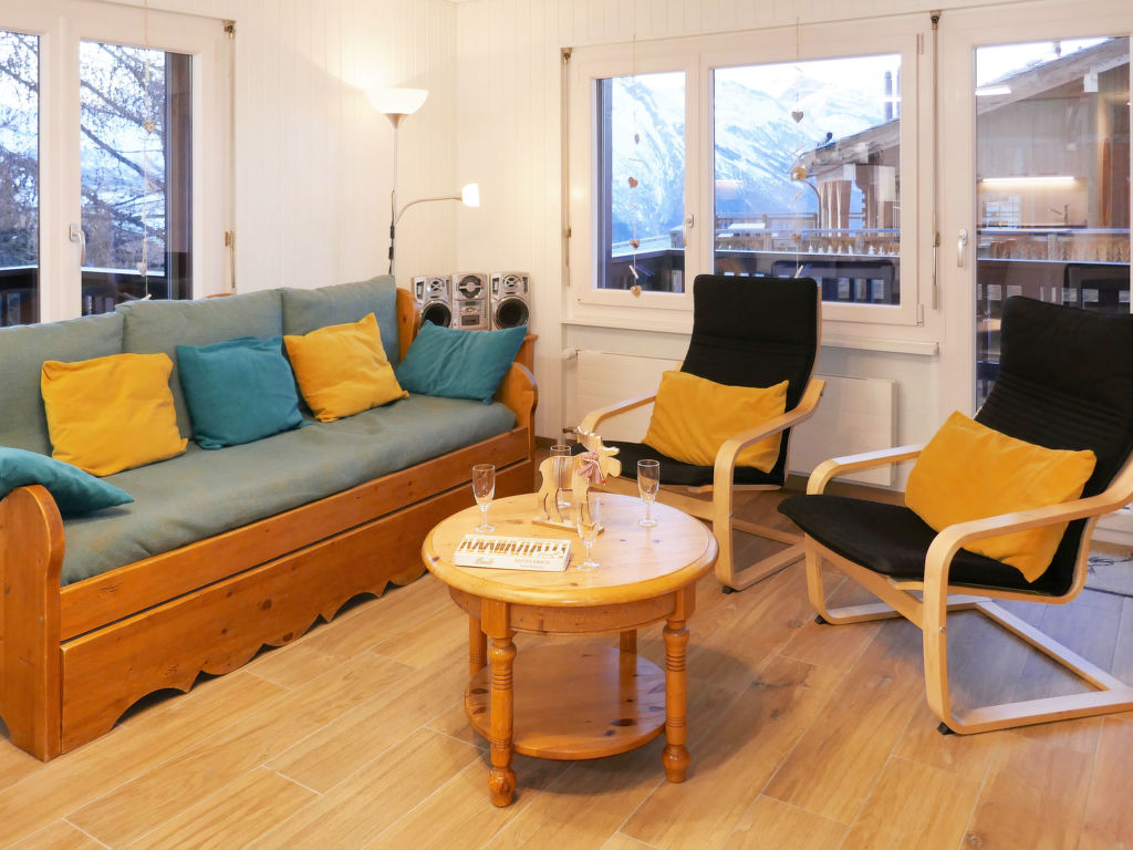"Eden Roc 56", 3-Zimmer-Wohnung 73 m2 im 2. Stock. Vollständig renoviert im Jahre 2019: Wohn-/Esszimmer mit 1 Doppeldiwanbett (2 x 80 cm, Länge 190 cm), offenem Kamin, Kabel-TV, Stereoanlage und DVD. 1 Zimmer mit 1 Doppelbett (2 x 90 cm, Länge 190 cm). 1 Zimmer mit 1 franz. Bett (140 cm, Länge 200 cm). Offene Küche (Backofen, Geschirrspüler, 4 Induktionskochplatten, Mikrowelle, elektrische Kaffeemaschine, Kapseln für die Kaffeemaschine (Nespresso) extra, Racletteofen, Fondue Set (Chinoise)). Bad/WC, Dusche/WC. Balkon, Südlage Balkon, Westlage und Nordlage. Balkonmöbel. Zur Verfügung: Kinderhochstuhl, Babybett, Haartrockner. Internet (Wireless LAN, gratis). Bitte beachten: Nichtraucher-Unterkunft.