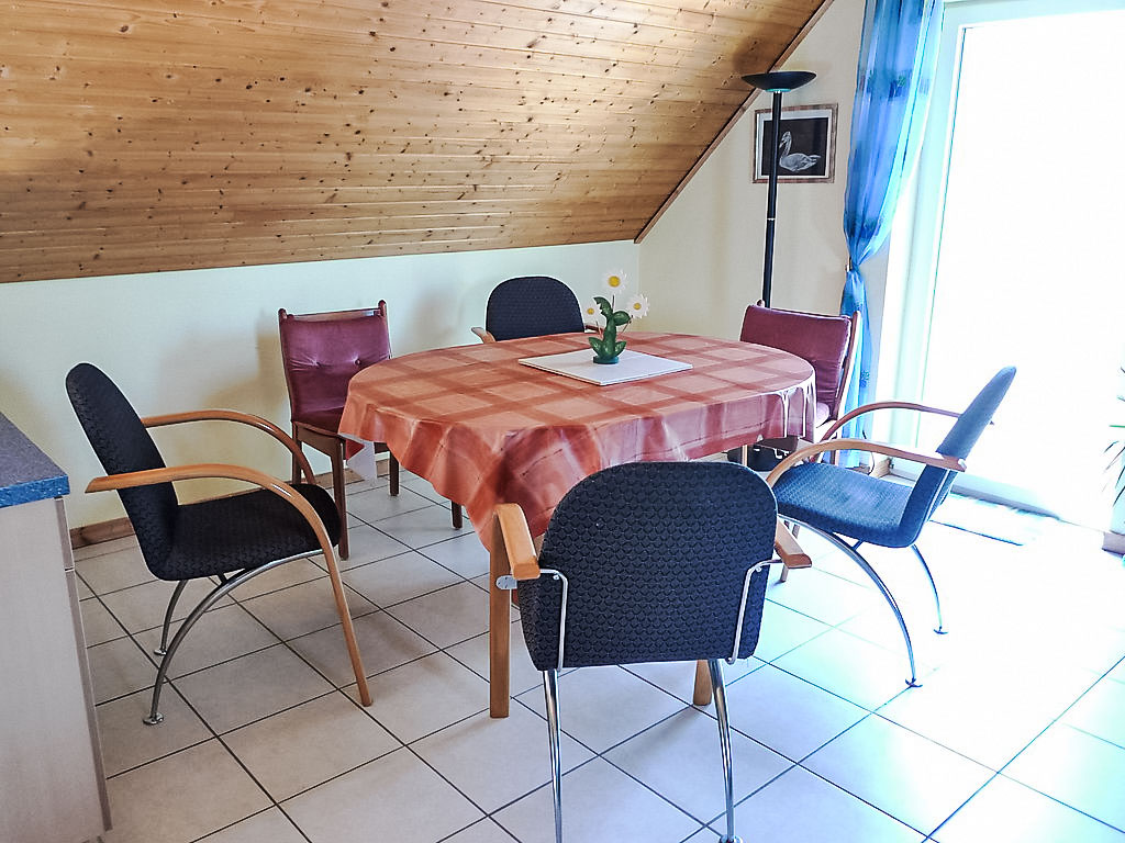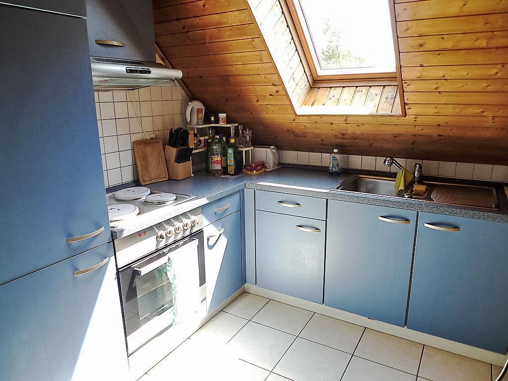 4-Zimmer-Wohnung 120 m2 auf 2 Stockwerken, im Obergeschoss. Gemütlich eingerichtet: Wohn-/Esszimmer mit Sat-TV und Stereoanlage. 1 Doppelzimmer. Offene Küche (4 Kochplatten, Backofen, Geschirrspüler, Mikrowelle, elektrische Kaffeemaschine). Dusche/WC. Dachgeschoss: 2 abgeschrägte Zimmer, jedes Zimmer mit 2 Betten. Terrasse 25 m2. Terrassenmöbel, Elektrogrill (mobil). Schöne Sicht auf die Landschaft. Zur Verfügung: Waschmaschine, Wäschetrockner, Telefon. Internet (Wireless LAN, gratis). Bitte beachten: Nichtraucher-Unterkunft. Maximal 2 Haustiere/Hunde erlaubt. Die Terrasse ist eine Dachterrasse zur Alleinbenutzung. Hollywoodschaukel auf der Terrasse.