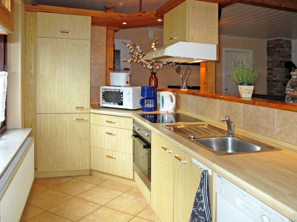 "Fritz", 3-Zimmer-Haus 70 m2. Gemütlich eingerichtet: Wohn-/Esszimmer mit Schwedenofen, Esstisch, Sat-TV, Stereoanlage und DVD. Ausgang zum Garten. 1 Zimmer mit 1 Doppelbett und Sat-TV. 1 Zimmer mit 1 x 2 Etagenbetten. Offene Küche (Backofen, Geschirrspüler, 4 Glaskeramikherd Platten, Toaster, Wasserkocher, Mikrowelle, elektrische Kaffeemaschine). Dusche/WC. Terrasse. Terrassenmöbel, Gartengrill, Liegestühle (2). Zur Verfügung: Waschmaschine, Sauna (extra), Kinderhochstuhl, Babybett. Internet (Wireless LAN, gratis). Bitte beachten: Nichtraucher-Unterkunft. 2 Haustiere/Hunde erlaubt.