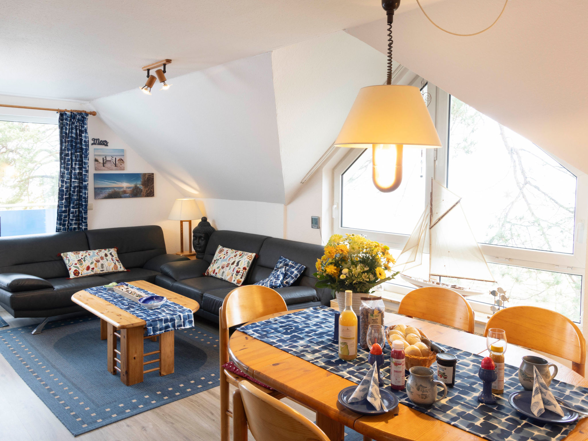 "Blaumuschel (LUB101)", 3-Zimmer-Wohnung 70 m2 im 2. Stock. Hell, gemütlich eingerichtet: abgeschrägtes Wohnzimmer mit Esstisch, Sat-TV und Radio. Ausgang zum Balkon. 1 Zimmer mit 1 Doppelbett. Ausgang zum Balkon. 1 abgeschrägtes Zimmer mit 2 Betten. Offene Küche (Backofen, Geschirrspüler, 4 Glaskeramikherd Platten, Toaster, Mikrowelle, elektrische Kaffeemaschine). Bad/WC. Balkon, Südlage und Westlage. Balkonmöbel. Seitliche Sicht auf das Meer. Zur Verfügung: Kinderhochstuhl, Babybett. Internet (Wireless LAN, gratis). Parkplatz. Bitte beachten: Nichtraucher-Unterkunft. Rauchmelder, Feuerlöscher.
