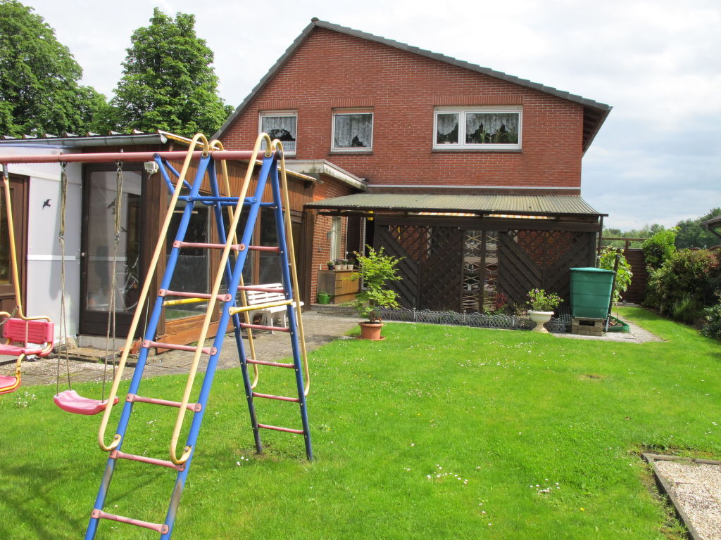 Stapel 7 km von Uplengen: Zweifamilienhaus. 6 km vom See. Zur Alleinbenutzung: Grundstück 250 m2, Garten mit Rasen. (Schaukel). Im Hause: Zentralheizung. Parkplatz beim Haus. Supermarkt 6 km, Restaurant 6 km, Bäckerei 4 km, Sandstrand 6 km (klein), Freibad 13 km, Hallenbad 13 km, Badesee 6 km. Golfplatz (18 Loch) 15 km.