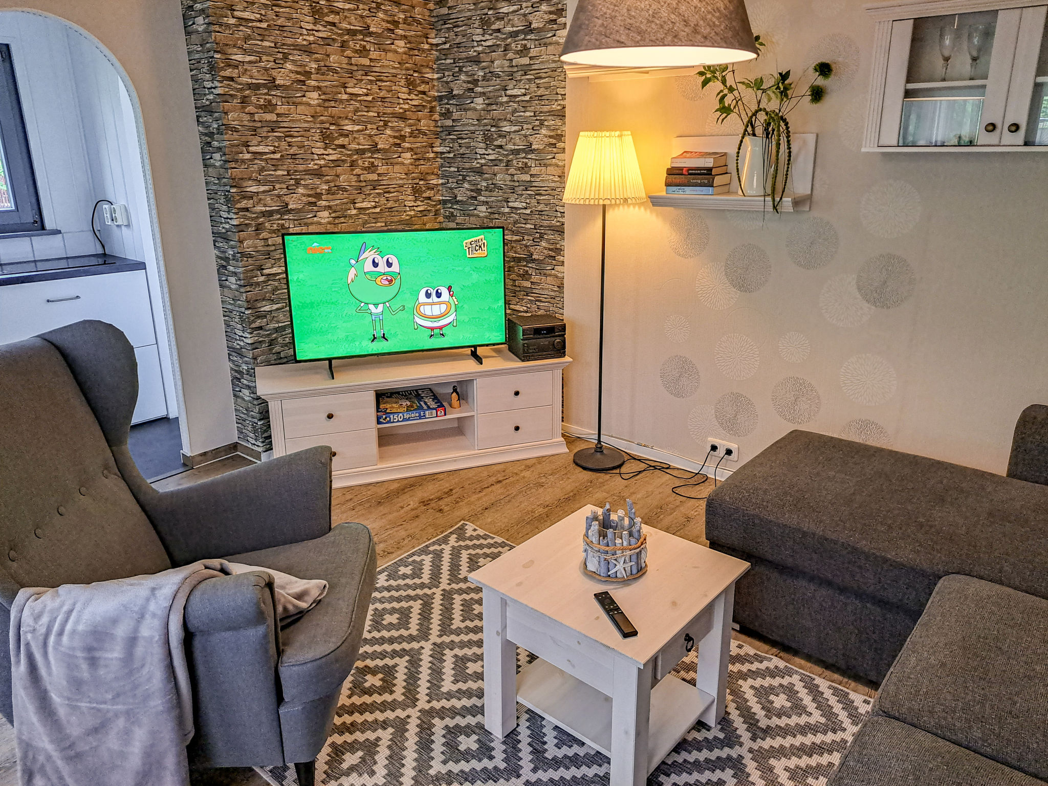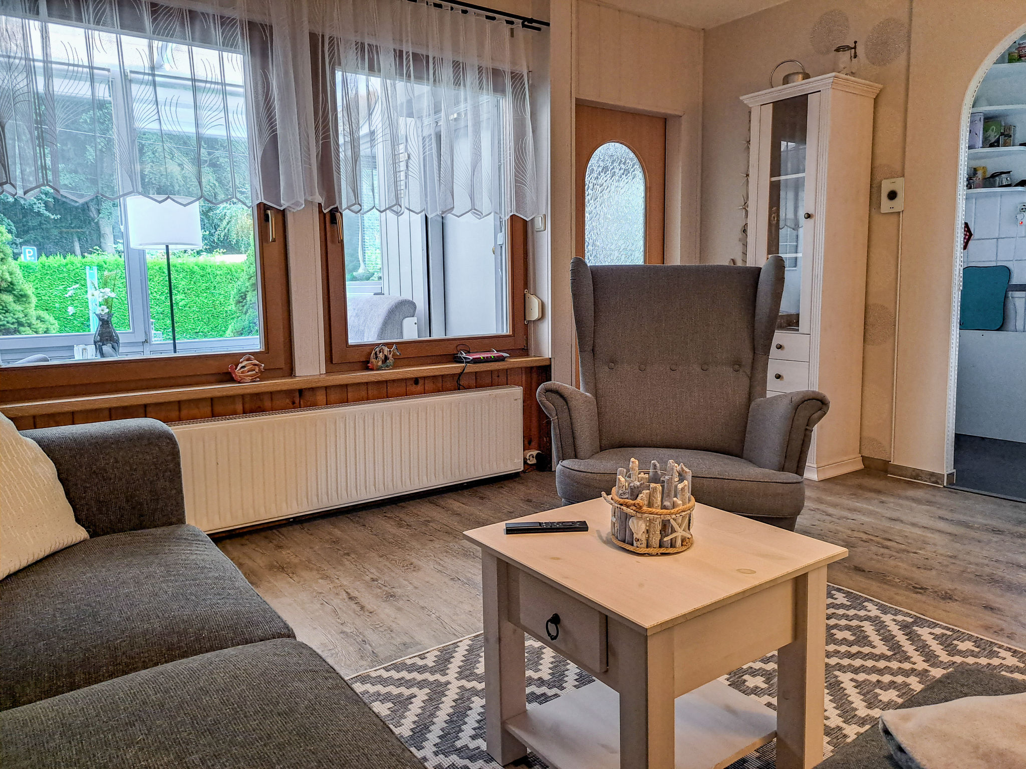 3-Zimmer-Haus 50 m2. Renoviert im Jahre 2018, zweckmässig und gemütlich eingerichtet: Wohnzimmer mit Schwedenofen, Sat-TV und Radio. Wohnzimmer mit Veranda mit 1 Doppeldiwanbett (150 cm), Sat-TV und Radio. 1 Zimmer mit 1 Doppelbett. Esszimmer mit Esstisch und Essecke. Kleine, offene Küche (2 Induktionskochplatten, Toaster, Wasserkocher, Mikrowelle, Tiefkühler, elektrische Kaffeemaschine). Dusche/WC. G-Heizung. Terrasse. Terrassenmöbel, Gartengrill (mobil). Zur Verfügung: Internet (Wireless LAN, gratis). Bitte beachten: Nichtraucher-Unterkunft. 1 Haustier/Hund erlaubt. Rauchmelder, Feuerlöscher.