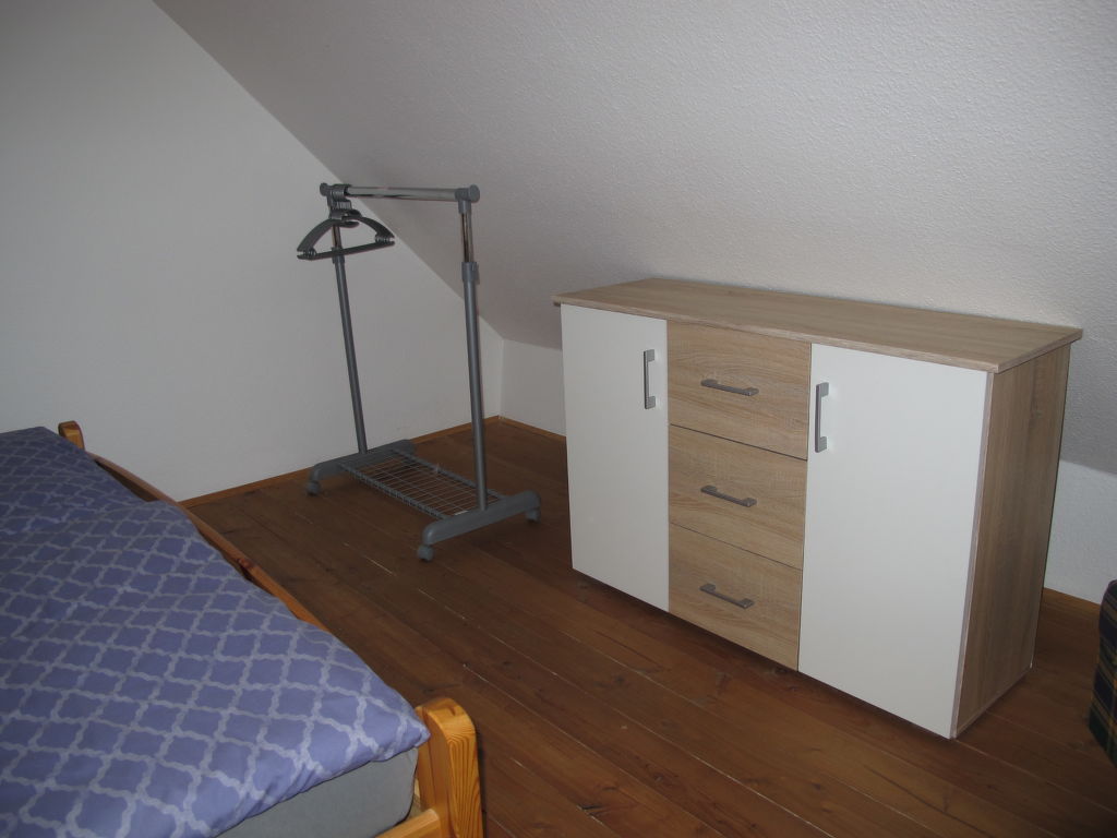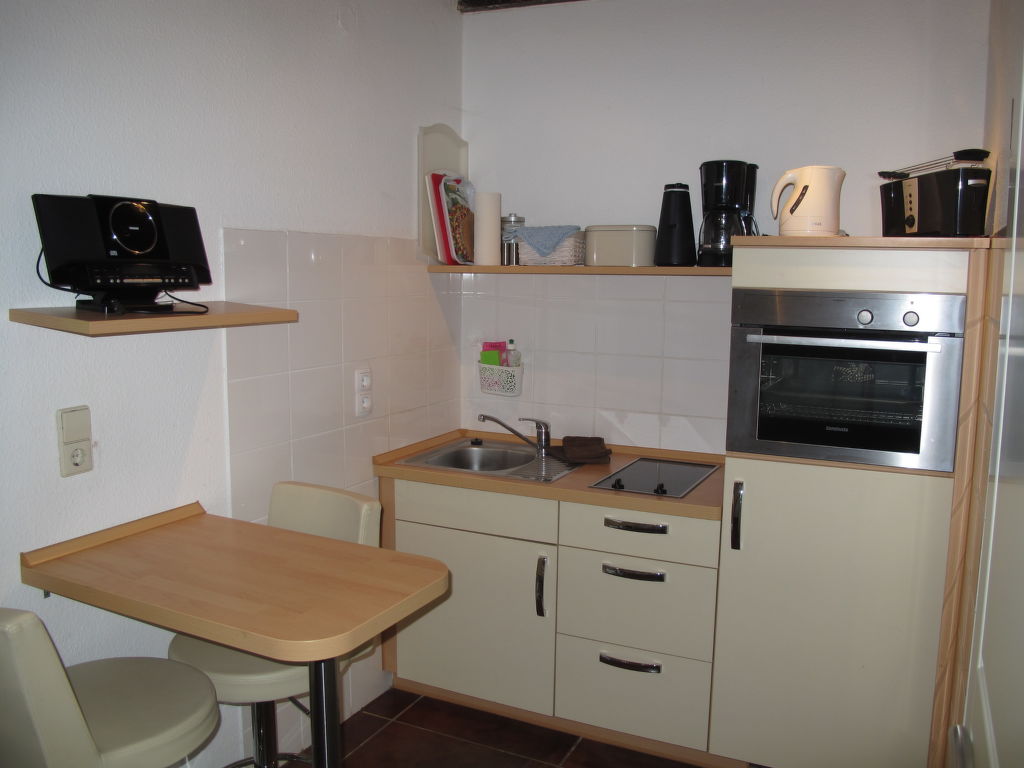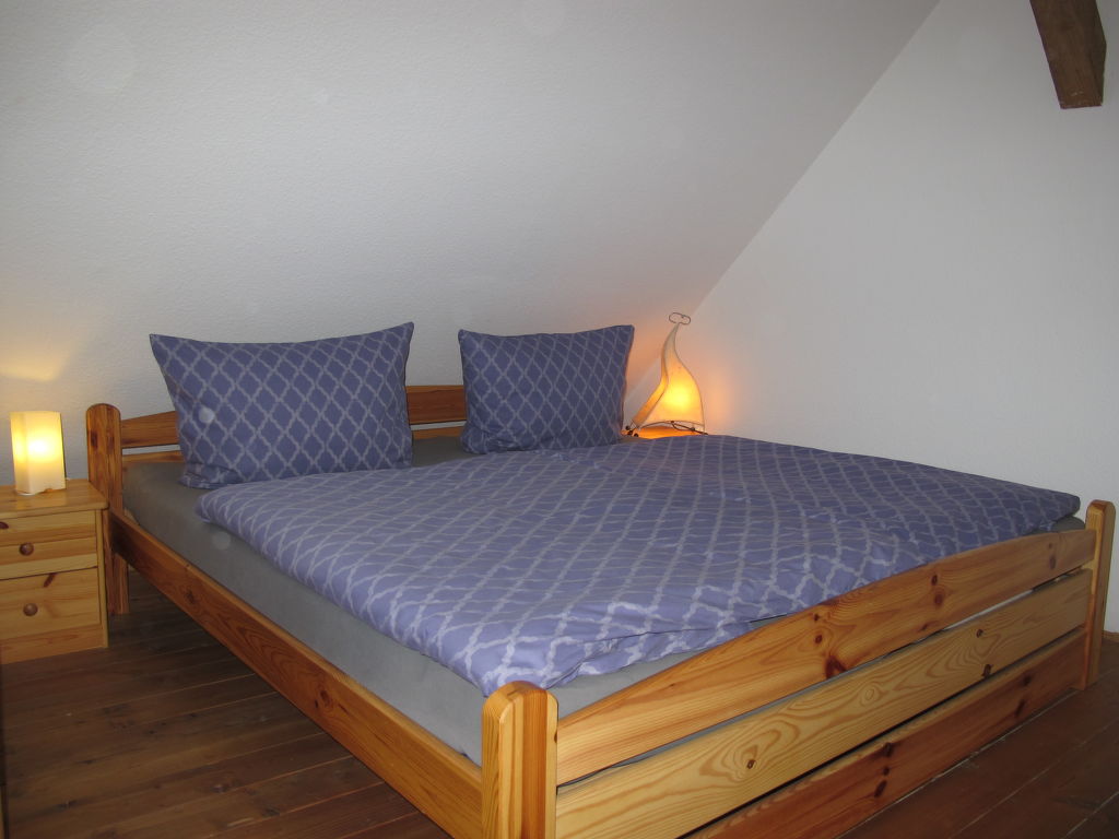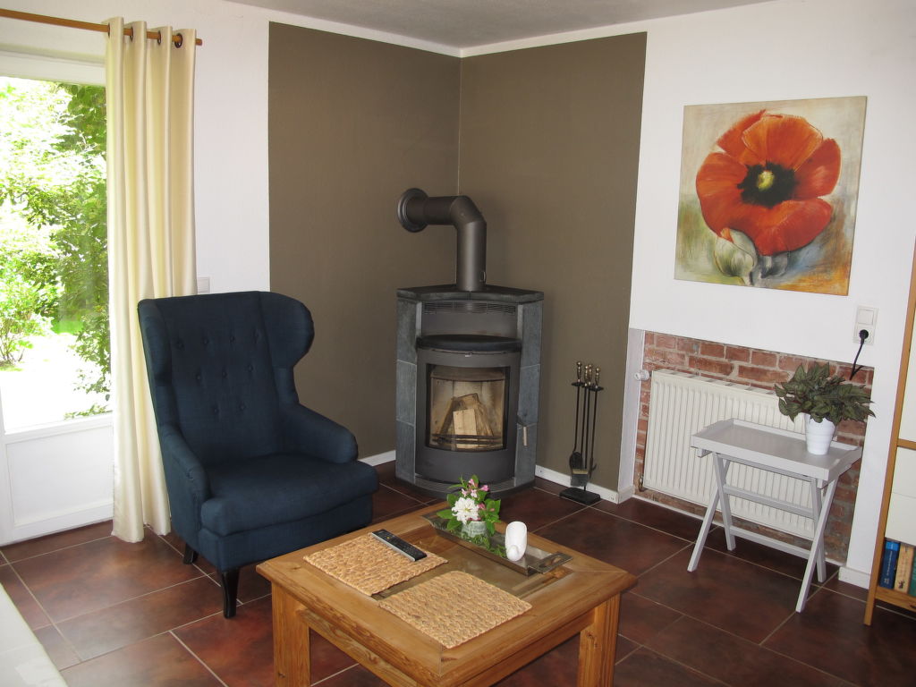"am Schloßsee", 2-Zimmer-Haus 45 m2 auf 2 Stockwerken. Renoviert im Jahre 2019, gemütlich eingerichtet: Wohnzimmer mit Schwedenofen und Sat-TV (Flachbildschirm), Radio und CD. Ausgang zur Terrasse. Kochnische (Backofen, 2 Glaskeramikherd Platten, Mikrowelle, elektrische Kaffeemaschine) mit Bar. Bad/Dusche, sep. WC. G-Heizung. Obergeschoss: 1 abgeschrägtes, offenes Zimmer mit 1 Doppelbett. Holzböden. Kleine Terrasse. Terrassenmöbel, Gartengrill (mobil), Liegestühle (2). Sicht auf den See. Zur Verfügung: Babybett, Holz (extra). Internet (Wireless LAN). Bitte beachten: Nichtraucher-Haus. Maximal 1 Haustier/Hund erlaubt. Eigener Eingang, Rauchmelder. Hinweis: Die Mitnahme eines zweiten Hundes ist nicht gestattet.
