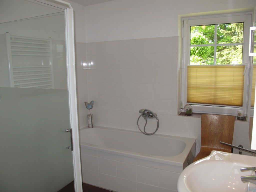 Haus "am Schloßsee", angebaut. Im Ortsteil Jamitzow, im Ort Buggenhagen, 5 km vom Zentrum von Lassan, ruhige Lage, 2.5 km vom See, im Grünen. Zur Mitbenutzung: Grundstück (eingezäunt), Garten mit Rasen und Bäumen, Parkplatz auf dem Grundstück. Einkaufsgeschäft 5 km, Supermarkt 5 km, Sandstrand "Bansin" 45 km, Grasstrand 2.5 km, Hallenbad 20 km. Golfplatz 35 km. Nahe gelegene Sehenswürdigkeiten: Till Richter Museum 2.3 km. Bekannte Seen in der Umgebung sind gut erreichbar: Schloßsee 500 m, Berliner See 2.5 km. Bitte beachten: Der Besitzer wohnt auf dem gleichen Grundstück. Eigentümer hat einen Hund.
