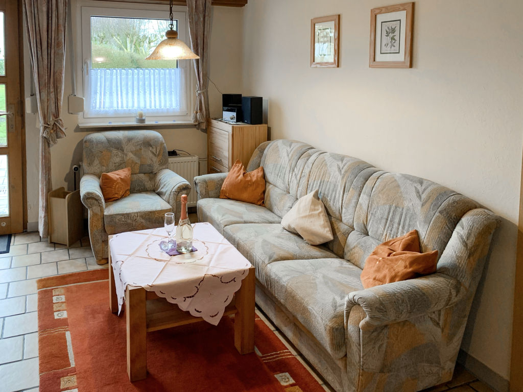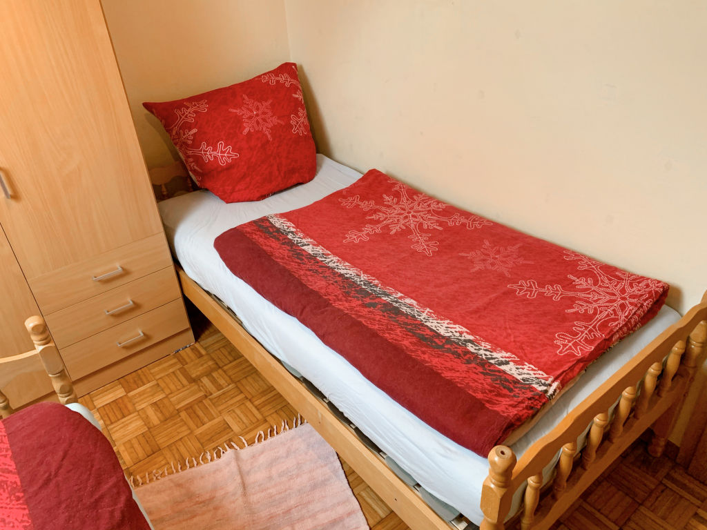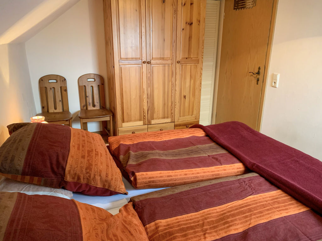 3-Zimmer-Wohnung 50 m2, im Erdgeschoss. Gemütlich und mit viel Holz eingerichtet: Wohn-/Esszimmer mit Sat-TV (Flachbildschirm), Radio. Ausgang zur Terrasse. 1 Zimmer mit 1 Doppelbett (2 x 90 cm, Länge 200 cm). 1 Zimmer mit 2 Betten (90 cm, Länge 200 cm). Kochnische (Backofen, Geschirrspüler, 4 Glaskeramikherd Platten, Toaster, Wasserkocher, Mikrowelle, elektrische Kaffeemaschine). Dusche/WC. Terrassenmöbel, Gartengrill (mobil). Zur Verfügung: Internet (Wireless LAN, gratis). Bitte beachten: Nichtraucher-Unterkunft.