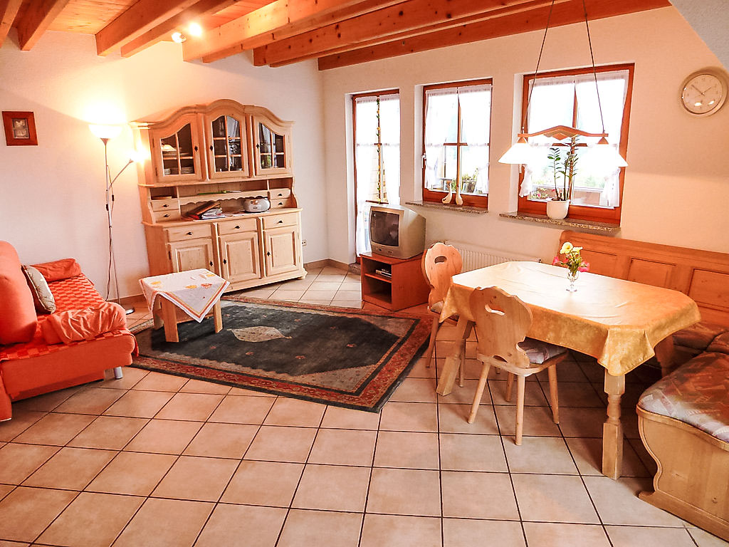 3-Zimmer-Wohnung 72 m2 im 2. Stock. Wohn-/Esszimmer mit Sat-TV, Radio und CD. Ausgang zum Balkon, Richtung Süden. 1 Zimmer mit 1 Bett und 1 x 2 Etagenbetten. 1 Doppelzimmer. Kochnische (Backofen, Geschirrspüler, 4 Glaskeramikherd Platten, elektrische Kaffeemaschine). Sep. WC, Bad/Dusche/WC. Balkonmöbel. Zur Verfügung: Kinderhochstuhl, Haartrockner. Internet (Wireless LAN, gratis). Bitte beachten: Nichtraucher-Unterkunft. Maximal 1 Haustier/Hund erlaubt. Eigener Eingang. Der Balkon ist überdacht. Zugang zur Wohnung über zwei separate Eingänge möglich, einer davon ist ebenerdig.