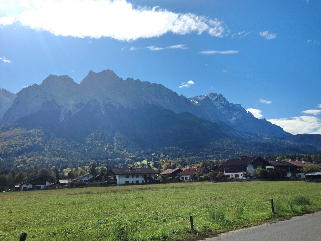 Appartementhaus "Alpenblick". 5 km vom Zentrum von Garmisch-Partenkirchen, 300 m vom Zentrum von Farchant, 83 km vom Zentrum von München. Parkplatz auf dem Grundstück. Supermarkt 1.5 km, Bäckerei 250 m, Bahnstation 500 m, Freibad 2 km. Wanderwege ab Haus 700 m, Bergbahn 7 km, Skilift 6 km, Langlaufloipe 300 m.