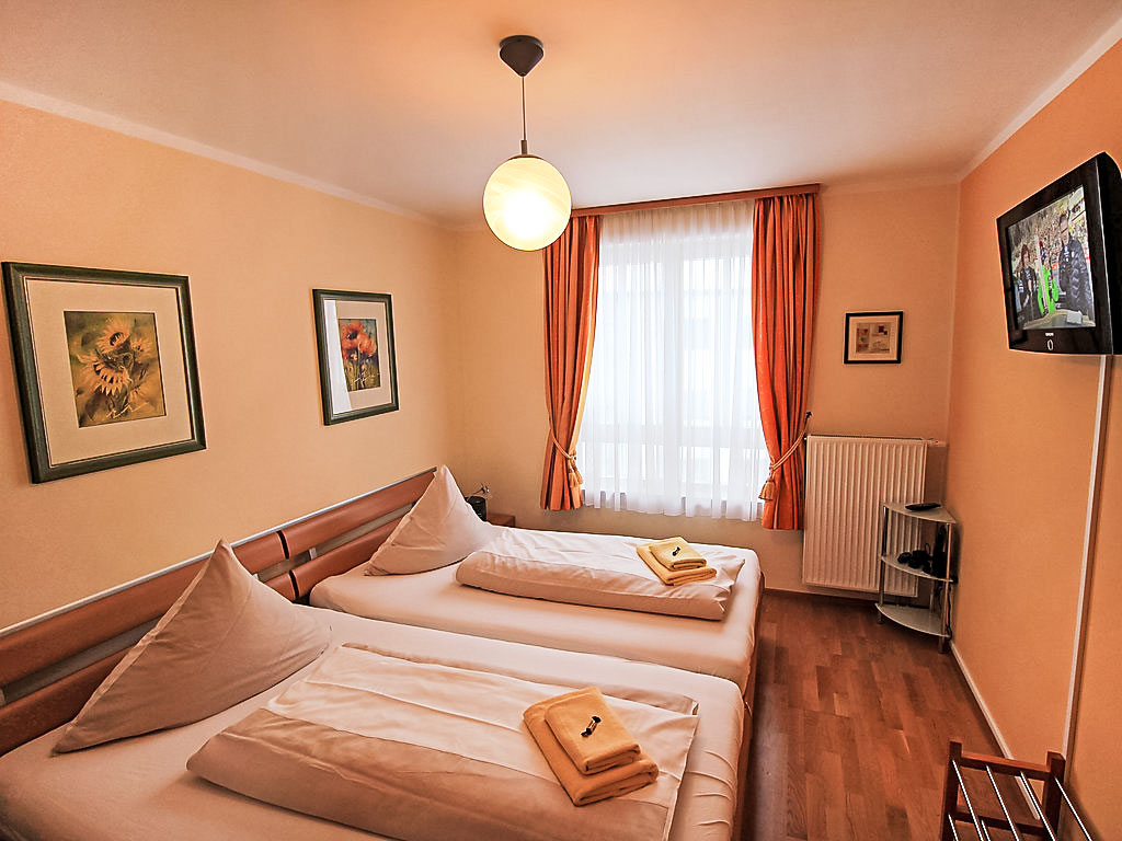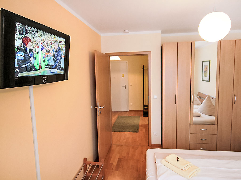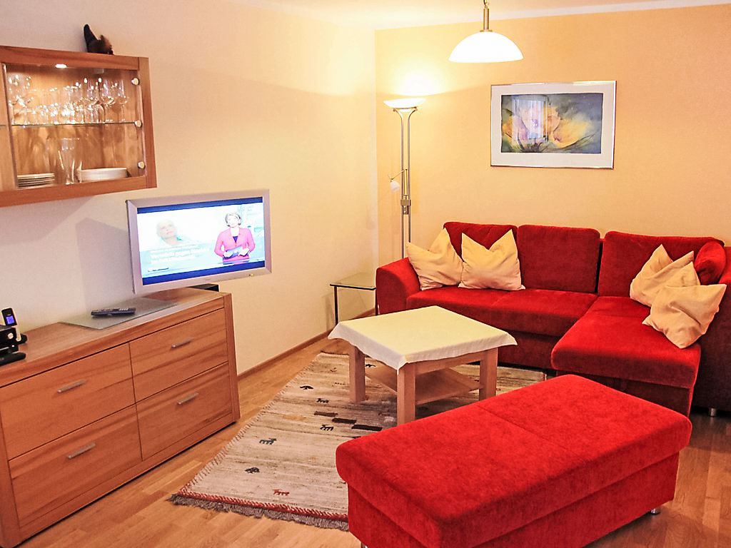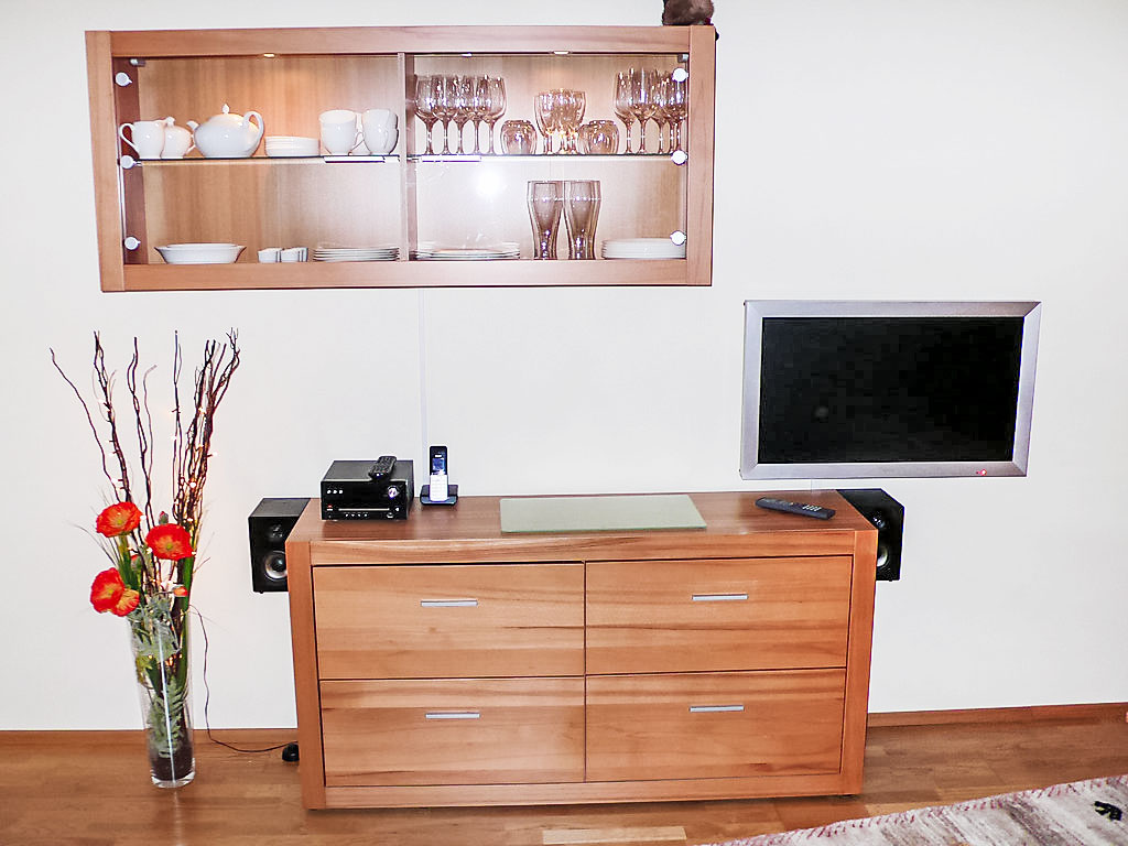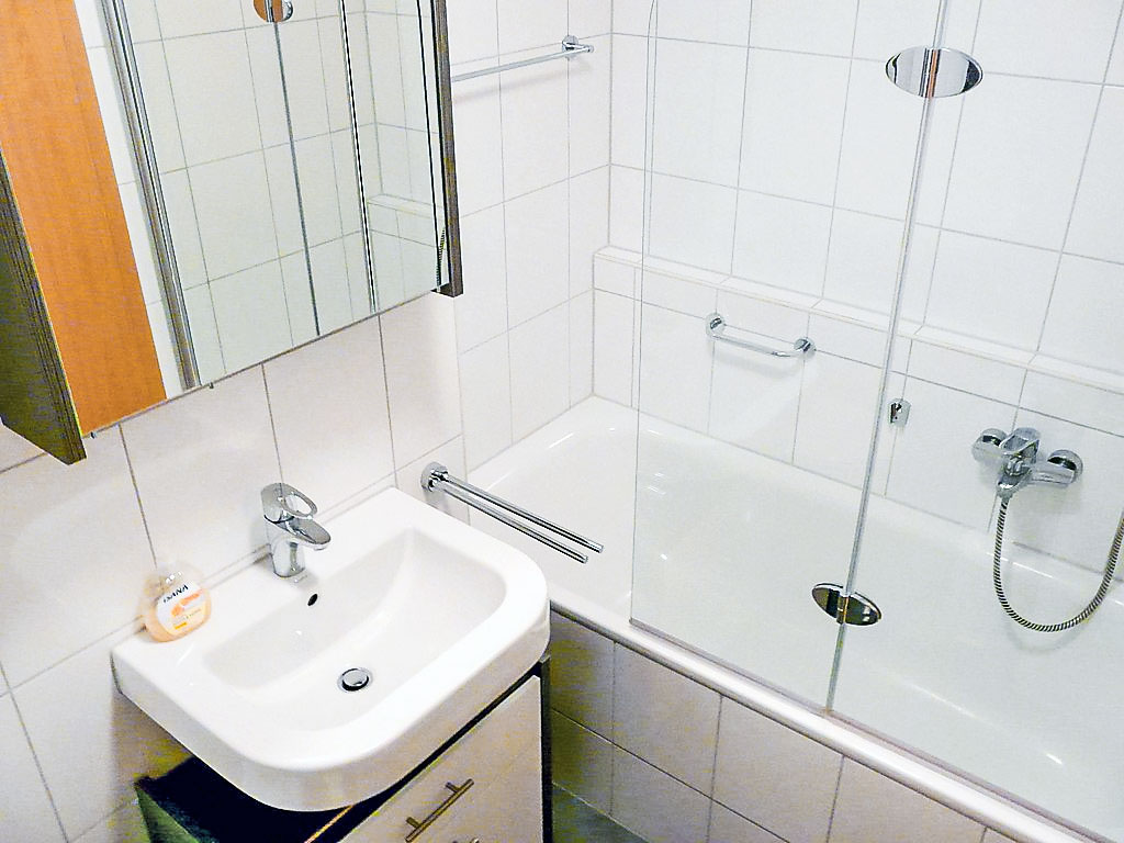 2-Zimmer-Wohnung 55 m2 im 2. Stock. Geschmackvoll eingerichtet: Wohn-/Esszimmer mit 1 Diwanbett und Kabel-TV (Flachbildschirm), Stereoanlage und DVD. Ausgang zum Balkon. 1 Zimmer mit 2 Betten (120 cm, Länge 200 cm), Kabel-TV (Flachbildschirm). Kochnische (Backofen, Geschirrspüler, 4 Glaskeramikherd Platten, Mikrowelle, Tiefkühler, elektrische Kaffeemaschine). Bad/Dusche/WC. Balkonmöbel. Zur Verfügung: Waschmaschine, Wäschetrockner, Telefon, Kinderhochstuhl. Internet (Wireless LAN, gratis). Parkplatz Nr. 14. Bitte beachten: Nichtraucher-Unterkunft. Rauchmelder, Feuerlöscher. Telefon für kostenlose Telefonate in das deutsche Festnetz. Sollten Sie eigene Bettwäsche mitbringen, beachten Sie bitte die Breite der Betten (je 120 cm) und Grösse der Bettdecken (je 155 cm x 220 cm).