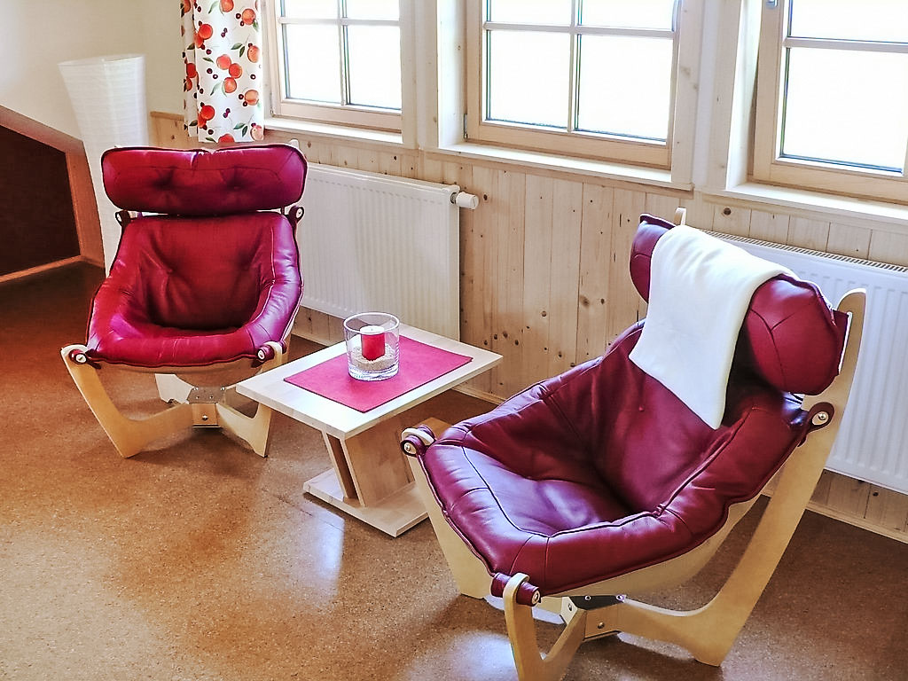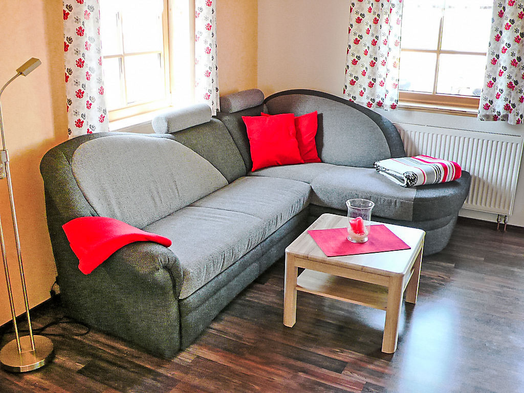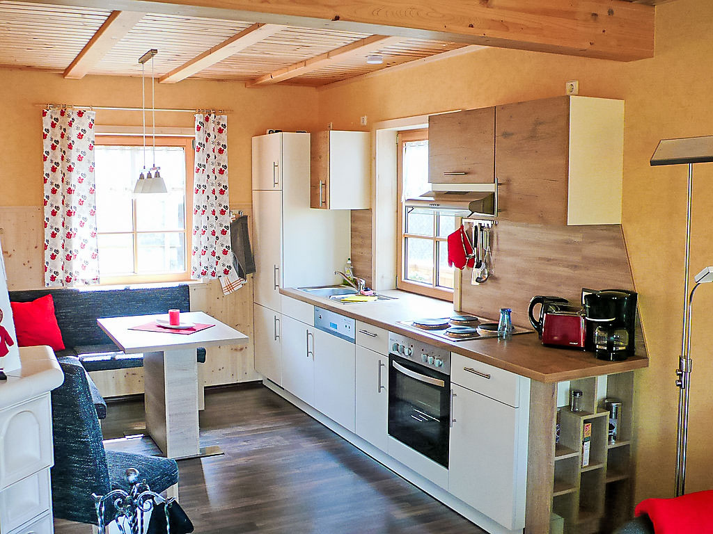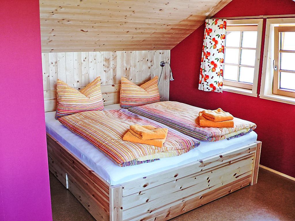 3-Zimmer-Haus 72 m2 auf 2 Stockwerken, im Erdgeschoss. Gemütlich und mit viel Holz eingerichtet: Wohn-/Esszimmer mit offenem Kamin und Sat-TV (Flachbildschirm), Stereoanlage. Ausgang zum Garten, zur Terrasse. 1 Doppelzimmer. Kochnische (4 Kochplatten, Backofen, Geschirrspüler, elektrische Kaffeemaschine). Dusche/WC. Dachgeschoss: (steile Treppe) 1 abgeschrägtes Doppelzimmer. Dusche/WC. Grosse Terrasse 36 m2. Terrassenmöbel, Gartengrill. Zur Verfügung: Kinderhochstuhl, Holz (gratis). Internet (Wireless LAN, gratis). Bitte beachten: Nichtraucher-Haus. Rauchmelder, Feuerlöscher. Badezimmer im Erdgeschoss mit Fussbodenheizung. Schlafzimmer im Dachgeschoss mit Sitzplatz und schönem Blick auf das Schwarzatal und die umliegenden Berge.