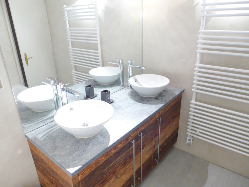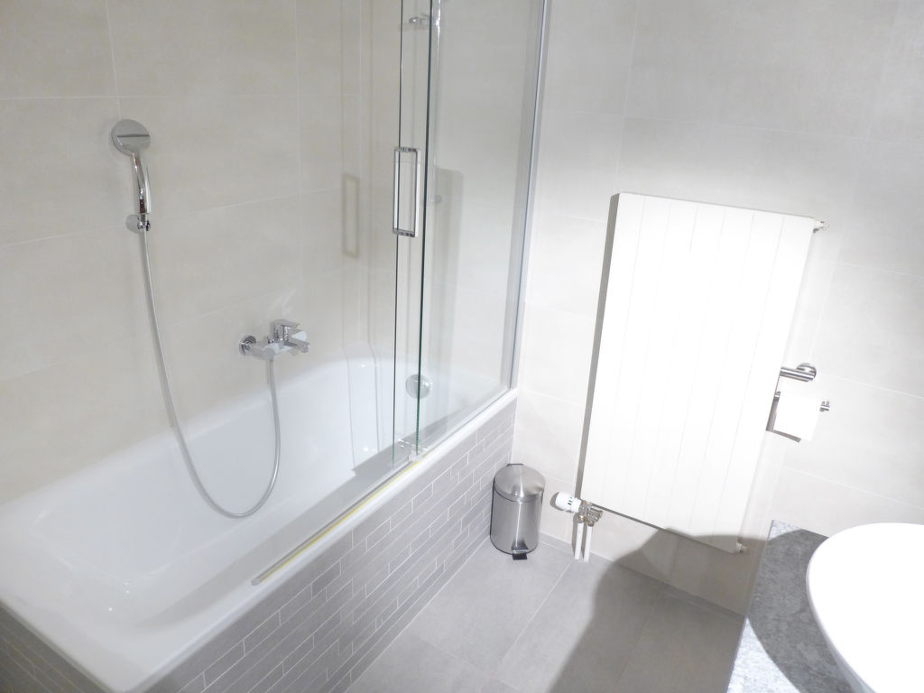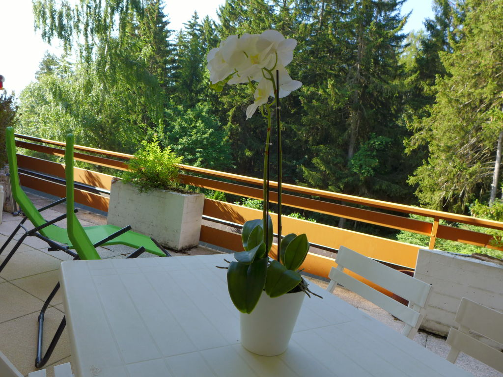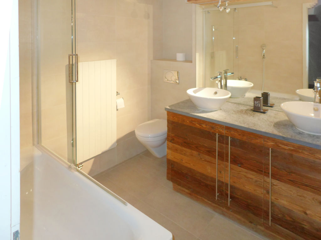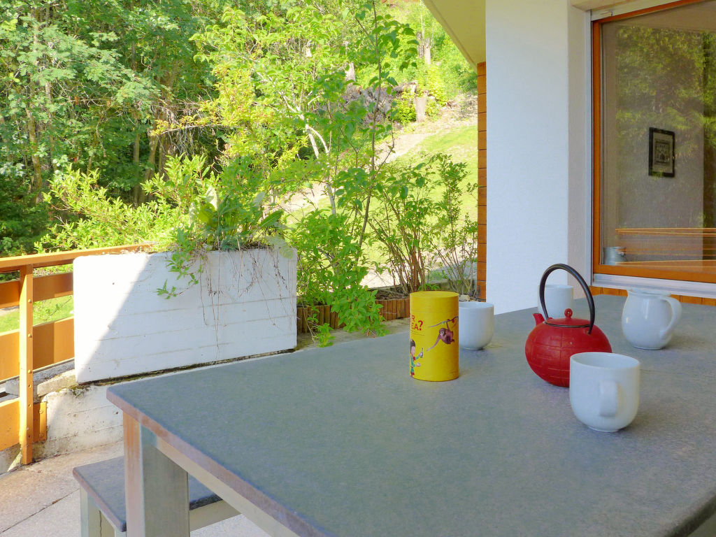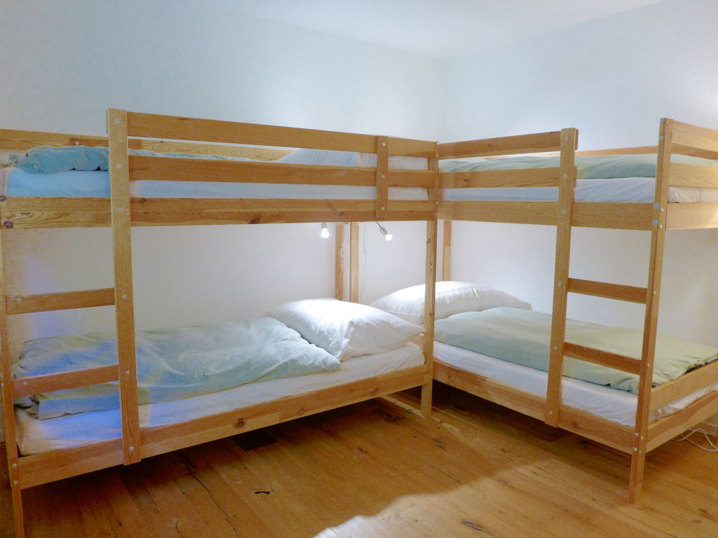 3-Zimmer-Wohnung 100 m2 im 2. Stock. Geräumig, komfortabel eingerichtet: grosses Wohn-/Esszimmer mit 1 Diwanbett, Bad/WC, Doppelwaschbecken und Kabel-TV. Ausgang zur Terrasse, Richtung Westen. 1 Zimmer mit 1 franz. Bett (140 cm, Länge 200 cm). 1 Zimmer mit 2 x 2 Etagenbetten (90 cm, Länge 200 cm). Offene Küche (Backofen, Geschirrspüler, 4 Glaskeramikherd Platten, Toaster, Wasserkocher, Mikrowelle, elektrische Kaffeemaschine, Kapseln für die Kaffeemaschine (Nespresso / Delizio) extra, Racletteofen, Fondue Set (Käse)). Dusche/WC. Grosse Terrasse. Terrassenmöbel, Liegestühle (2). Sicht auf den Wald. Zur Verfügung: Bügeleisen, Haartrockner. Internet (Wireless LAN, gratis). Garage Nr. 73, Höhe 200 cm, Breite 220 cm. Bitte beachten: Nichtraucher-Unterkunft.