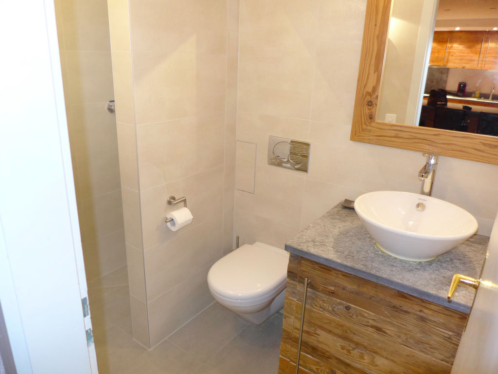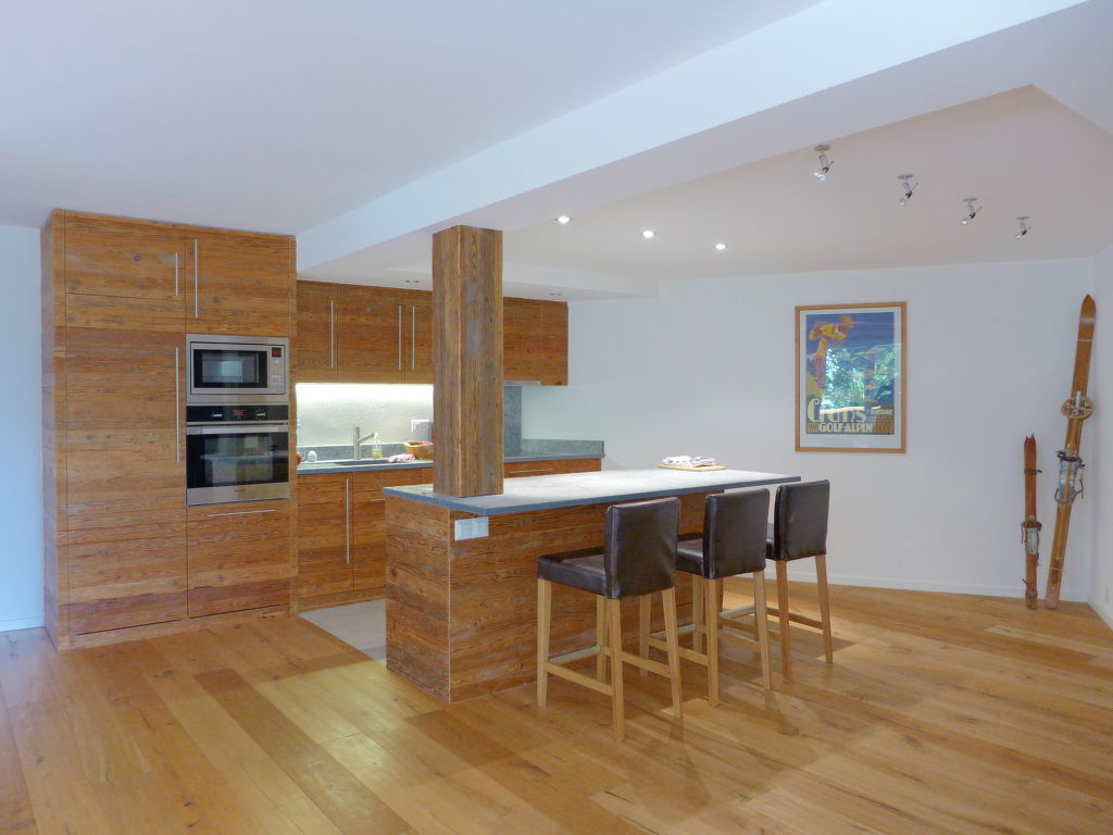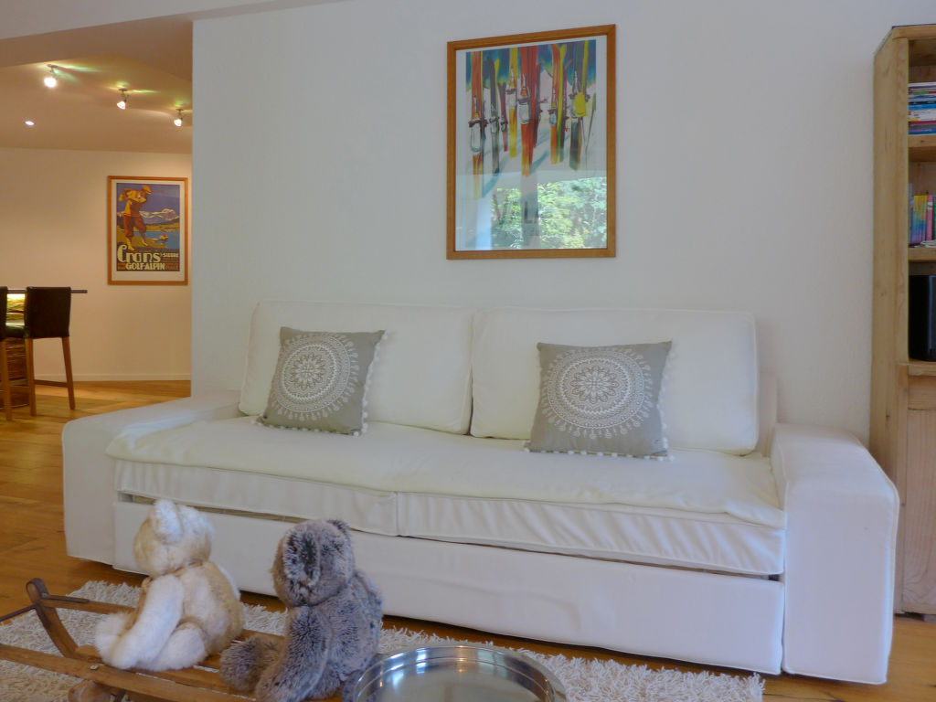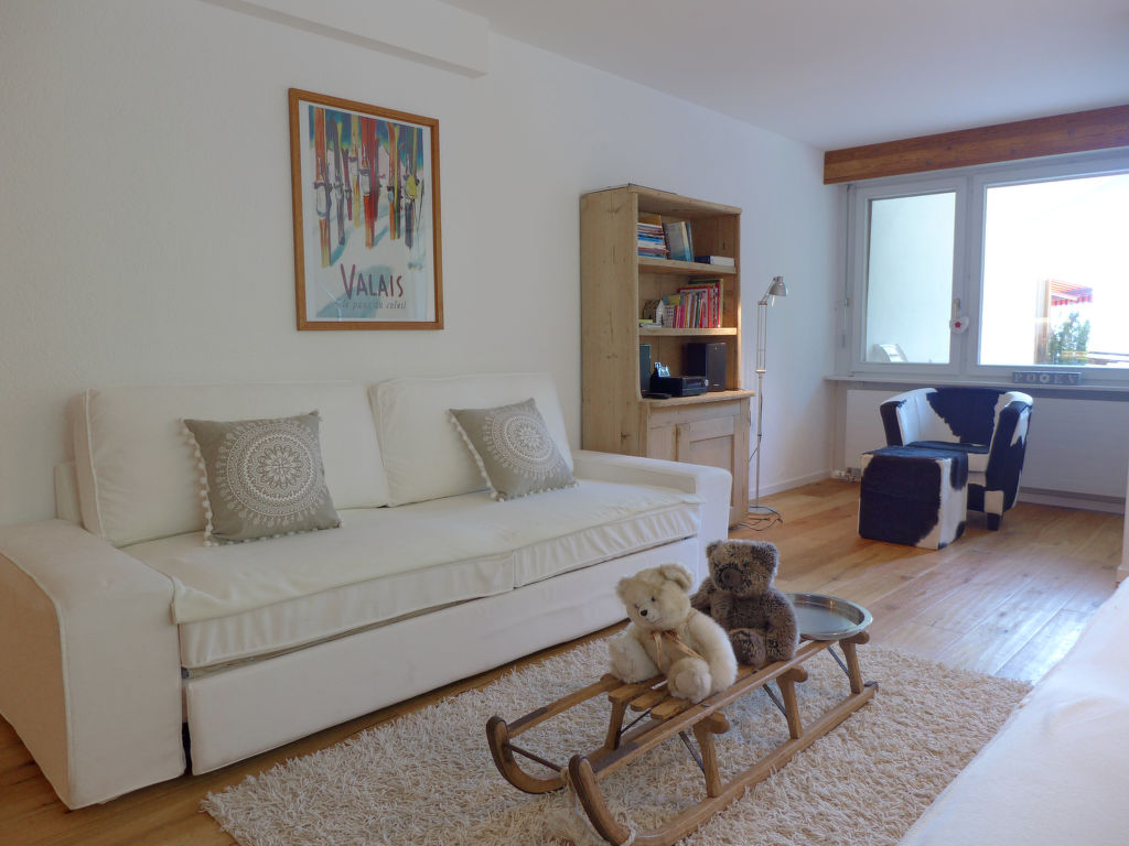 Terrassenhaus "Terrasse des Alpes". Im Ortsteil Marigny, 400 m vom Zentrum von Montana, sonnige Lage. Zur Mitbenutzung: Hallenbad beheizt (12 x 5 m, saisonale Verfügbarkeit: 01.Jan.-31.Okt. und 01.Dez.-31.Dez. Öffnungszeiten Schwimmbad: 08:00-20:00). Sprudelbad, Terrasse. Im Hause: Aufenthaltsraum, Fahrstuhl, Skiraum, Waschmaschine, Wäschetrockner (zur Mitbenutzung, extra). Einkaufsgeschäft, Supermarkt, Restaurant, Bar, Café 400 m, Bushaltestelle "Montana Poste" 300 m. Golfplatz (18 Loch) 3.8 km, Skisportanlagen 1.5 km. COVID-Messungen: Zugang zum Pool mit 2G+. Schwimmbad (ca. 26°) und Sprudelbad (ab 16 Jahre alt) im November geschlossen. Das Gebäude wurde auf einem geneigten Grundstück erbaut. Die Stockwerke werden als Ebenen betrachtet, die ab Residenzboden nummeriert sind. Bei starkem Schneefall, ist es gemäss den Anweisungen des Administrators untersagt, die Terrassen vom Schnee zu räumen.