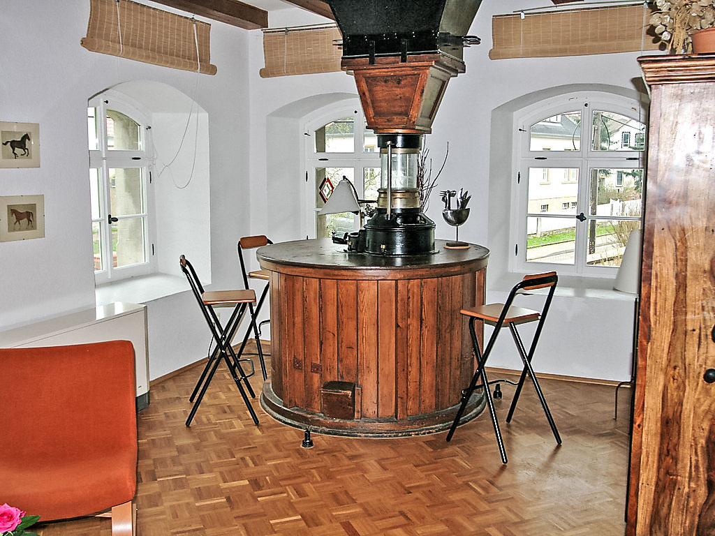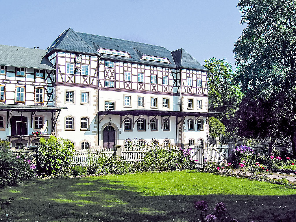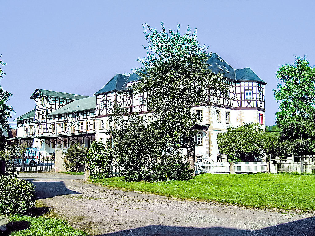 Residenz "Kunstmühle", aus dem 16. Jahrhundert. Am Ortsrand, 100 m vom Zentrum, 5.5 km vom Zentrum von Stadtilm, ruhige Lage. Zur Alleinbenutzung: Liegewiese 30 m2. Sitzplatz. Im Hause: Restaurant, Zentralheizung. Parkplatz beim Haus. Einkaufsgeschäft 3 km, Bushaltestelle 100 m, Freibad 12 km, Hallenbad 12 km. Golfplatz 22 km. Im Jahre 1999 wurde auf die Geschichte dieser aussergewöhnlich schönen und unter Denkmalschutz stehenden Kunstmühle (seit 1732 in Familienbesitz) zurückgegriffen und die Tradition der Senfmüllerei wieder aufgenommen (Senfverkauf), das liebevoll restaurierte Gesamtensemble verfügt über 18 Walzenstühle und nutzt zur Produktion die Wasserkraft (der Fluss Ilm durchfliesst das Gelände).
