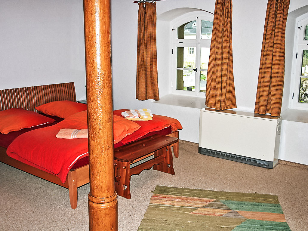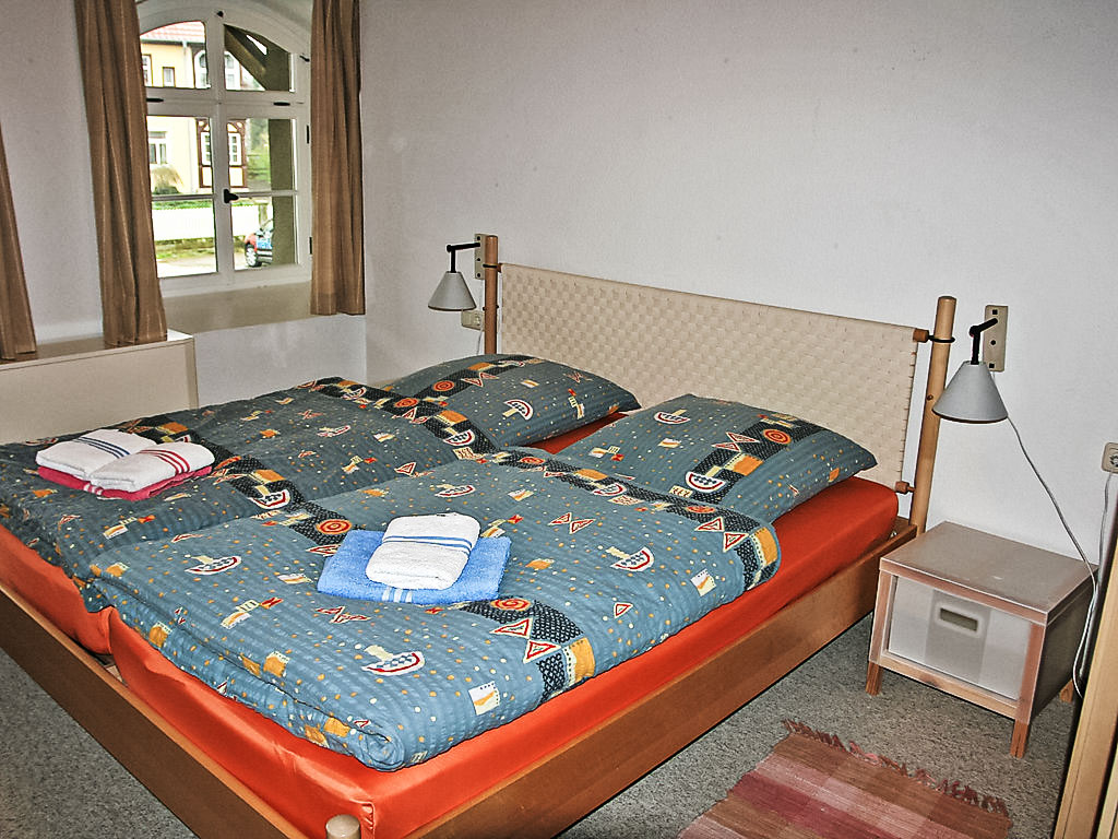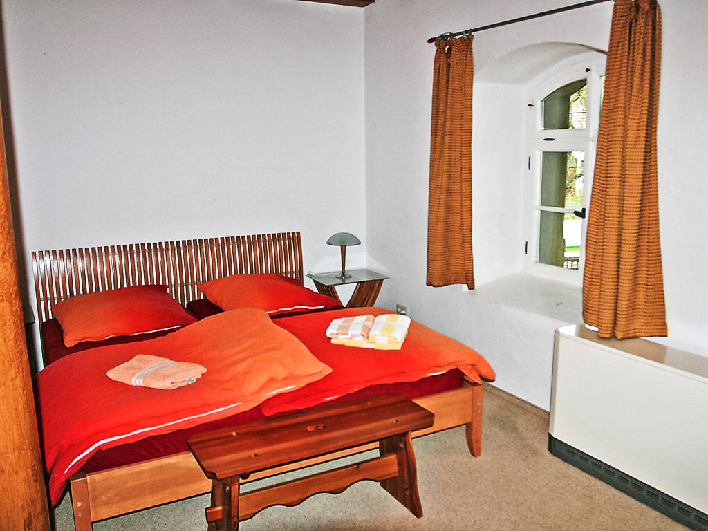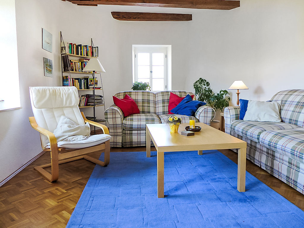 4-Zimmer-Wohnung 150 m2, im Zwischenstock. Komfortabel eingerichtet: Wohnzimmer mit Sat-TV (Flachbildschirm), Radio. 2 Doppelzimmer. 1 Zimmer mit 1 Doppeldiwanbett. Offene Küche (Backofen, Geschirrspüler, elektrische Kaffeemaschine). Bad/Dusche, sep. WC. Zur Verfügung: Waschmaschine, Kinderhochstuhl. Essplatz im grossen Flur. Die Ferienwohnung befindet sich im erhöhten Erdgeschoss des Hauptgebäudes.