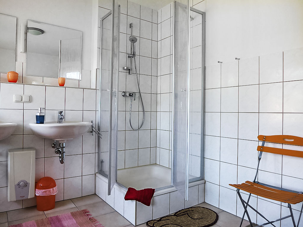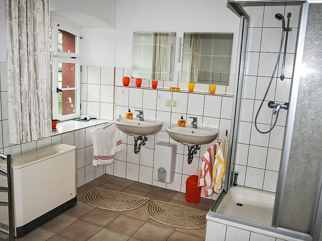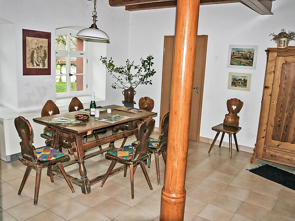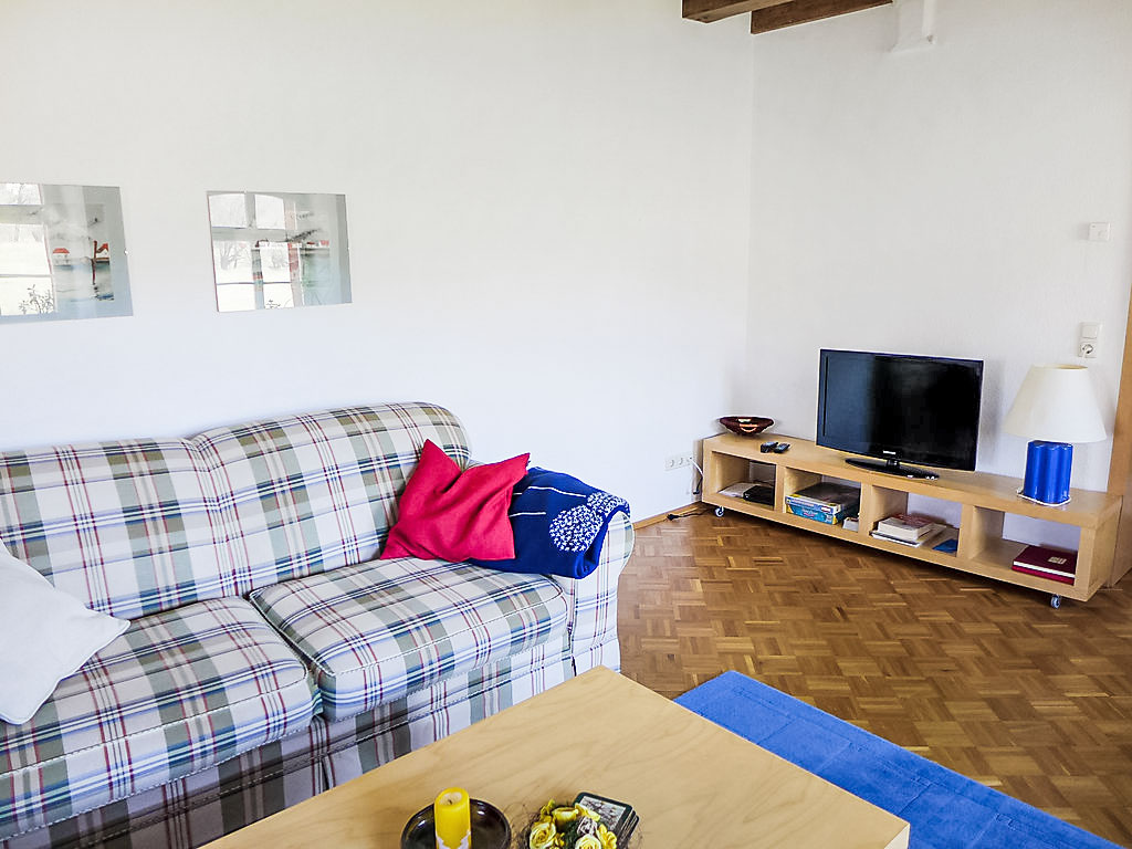 4-Zimmer-Wohnung 150 m2, im Zwischenstock. Komfortabel eingerichtet: Wohnzimmer mit Sat-TV (Flachbildschirm), Radio. 2 Doppelzimmer. 1 Zimmer mit 1 Doppeldiwanbett. Offene Küche (Backofen, Geschirrspüler, elektrische Kaffeemaschine). Bad/Dusche, sep. WC. Zur Verfügung: Waschmaschine, Kinderhochstuhl. Essplatz im grossen Flur. Die Ferienwohnung befindet sich im erhöhten Erdgeschoss des Hauptgebäudes.