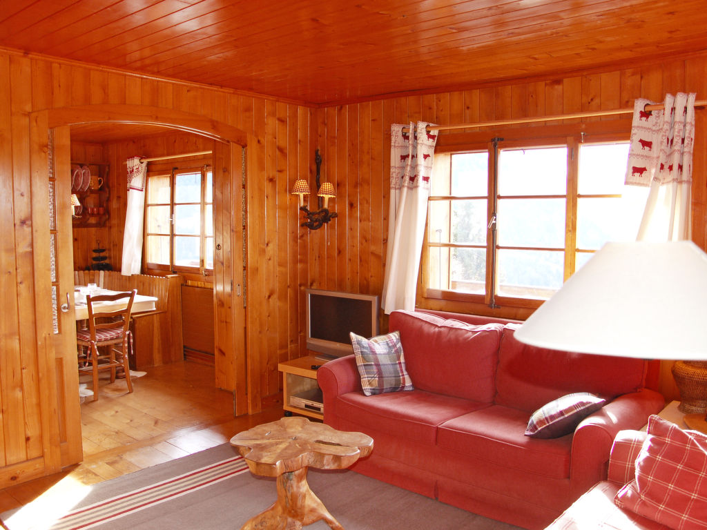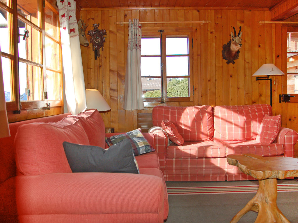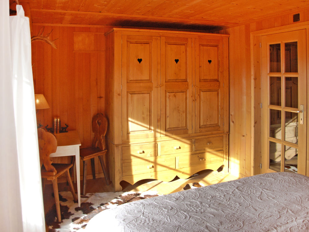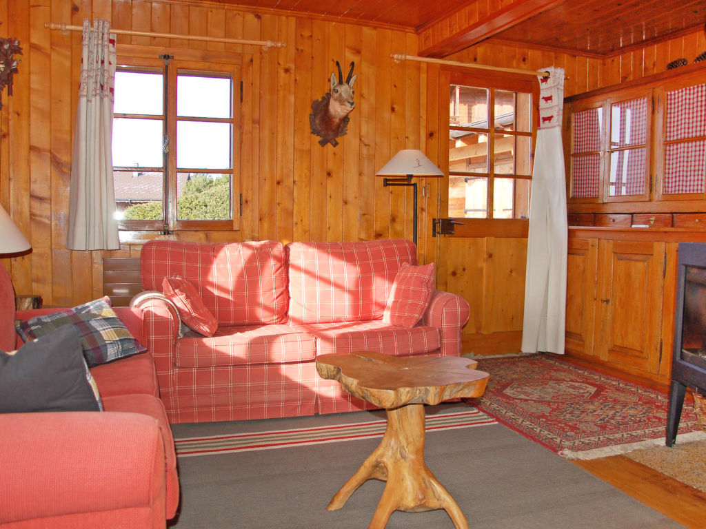 "Jodeli", 5-Zimmer-Chalet auf 3 Stockwerken, Südlage. Komfortabel und schön eingerichtet: Wohn-/Esszimmer mit offenem Kamin, Schwedenofen, Esstisch und DVD. Ausgang zum Balkon, Richtung Süden und Richtung Westen. 1 Zimmer mit 1 x 2 Etagenbetten (90 cm, Länge 190 cm). Offene Küche (Backofen, 4 Induktionskochplatten, Mikrowelle, elektrische Kaffeemaschine, Kapseln für die Kaffeemaschine (Nespresso) extra, Racletteofen, Fondue Set (Käse)). Dusche/WC. Unteres Geschoss: (steile Treppe) 1 Doppelzimmer mit 1 Doppelbett (160 cm, Länge 200 cm), Bad/Dusche/Bidet/WC und Doppelwaschbecken. Ausgang zur Terrasse. Obergeschoss: (steile Treppe) abgeschrägtes Durchgangszimmer, Deckenhöhe 170 - 30 cm. 1 abgeschrägtes Zimmer, ohne Schrank mit 2 Betten (90 cm, Länge 200 cm). Balkon, Südlage und Westlage, grosser Garten. Terrassenmöbel, Balkonmöbel, Gartengrill. Sehr schöne Panoramasicht auf die Berge und das Tal. Zur Verfügung: Waschmaschine, Wäschetrockner, Sauna, Haartrockner, Holz (extra). Internet (Wireless LAN). Bitte beachten: Nichtraucher-Unterkunft.