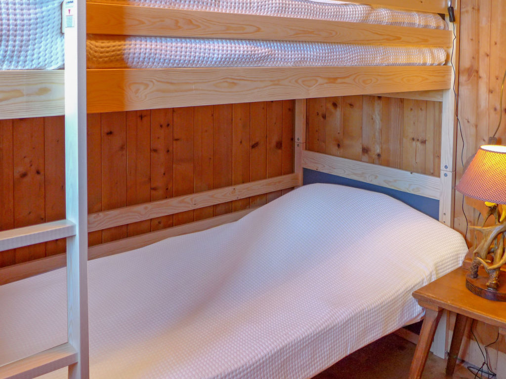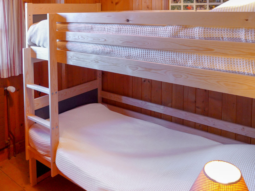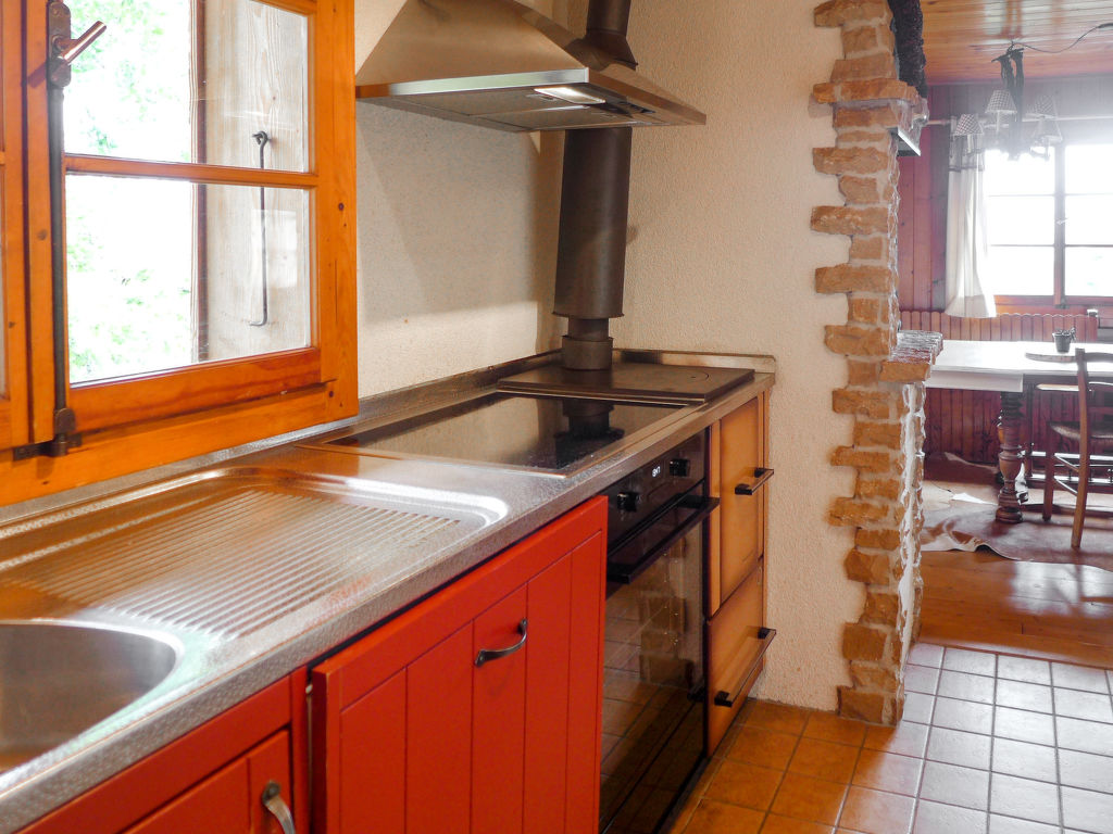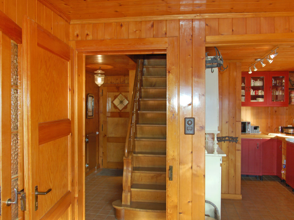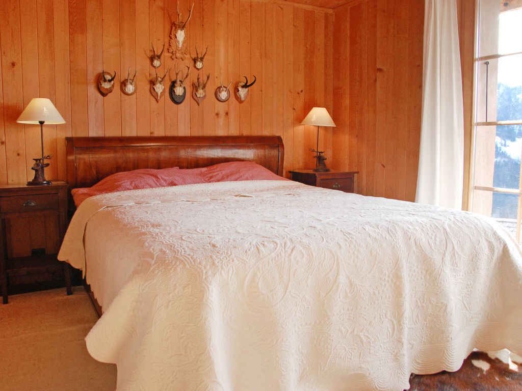 "Jodeli", 5-Zimmer-Chalet auf 3 Stockwerken, Südlage. Komfortabel und schön eingerichtet: Wohn-/Esszimmer mit offenem Kamin, Schwedenofen, Esstisch und DVD. Ausgang zum Balkon, Richtung Süden und Richtung Westen. 1 Zimmer mit 1 x 2 Etagenbetten (90 cm, Länge 190 cm). Offene Küche (Backofen, 4 Induktionskochplatten, Mikrowelle, elektrische Kaffeemaschine, Kapseln für die Kaffeemaschine (Nespresso) extra, Racletteofen, Fondue Set (Käse)). Dusche/WC. Unteres Geschoss: (steile Treppe) 1 Doppelzimmer mit 1 Doppelbett (160 cm, Länge 200 cm), Bad/Dusche/Bidet/WC und Doppelwaschbecken. Ausgang zur Terrasse. Obergeschoss: (steile Treppe) abgeschrägtes Durchgangszimmer, Deckenhöhe 170 - 30 cm. 1 abgeschrägtes Zimmer, ohne Schrank mit 2 Betten (90 cm, Länge 200 cm). Balkon, Südlage und Westlage, grosser Garten. Terrassenmöbel, Balkonmöbel, Gartengrill. Sehr schöne Panoramasicht auf die Berge und das Tal. Zur Verfügung: Waschmaschine, Wäschetrockner, Sauna, Haartrockner, Holz (extra). Internet (Wireless LAN). Bitte beachten: Nichtraucher-Unterkunft.