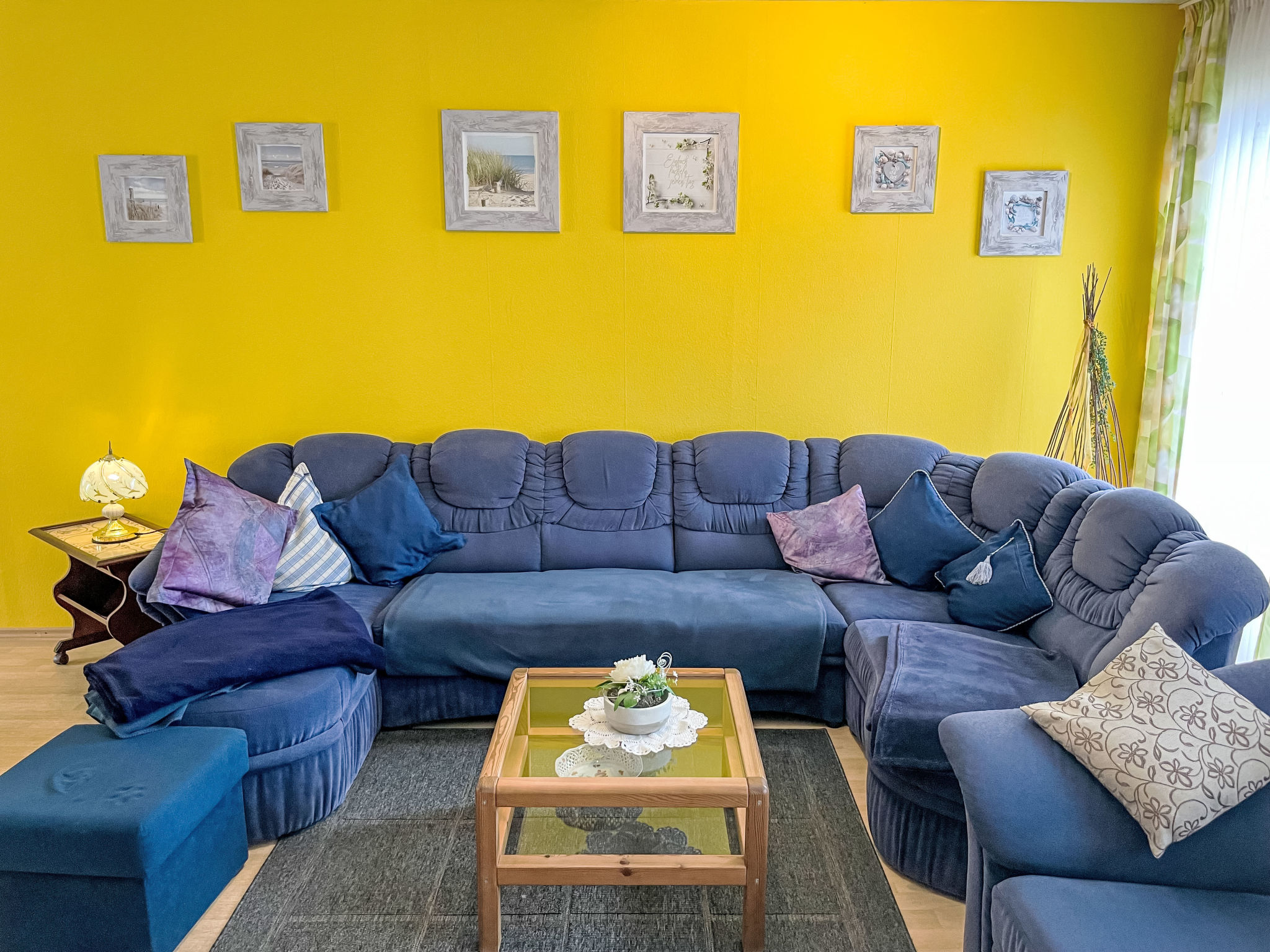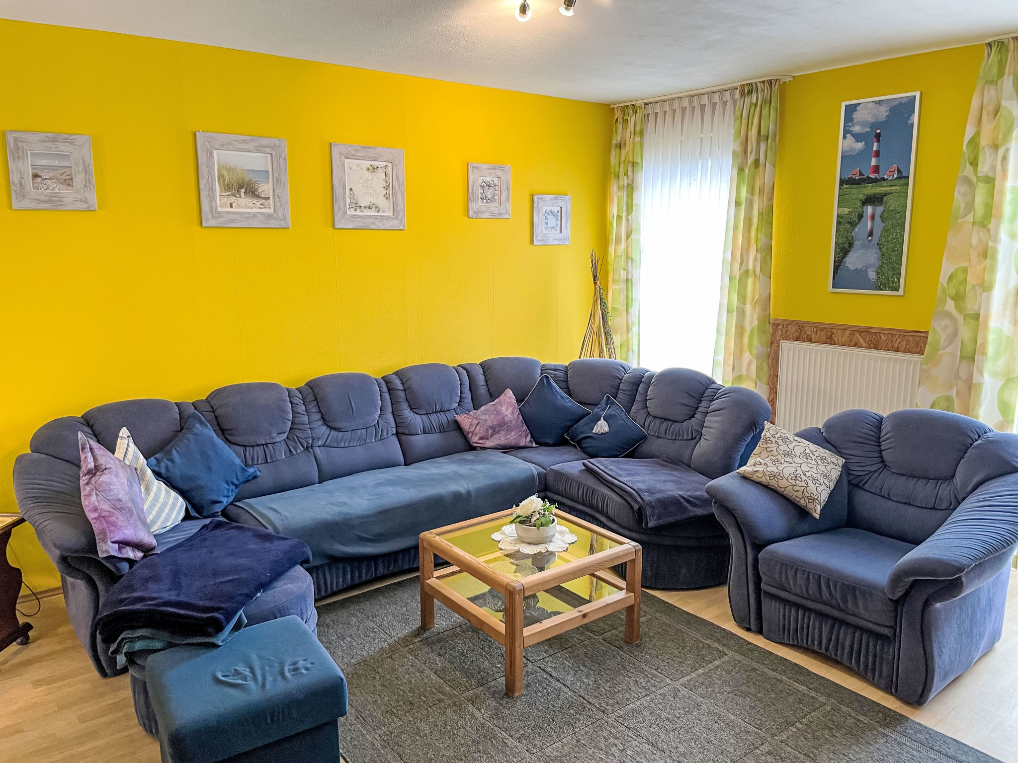 4-Zimmer-Doppelhaushälfte 100 m2, im Erdgeschoss. Gemütlich eingerichtet: grosses Wohn-/Esszimmer mit Sat-TV und Stereoanlage. 3 Zimmer, jedes Zimmer mit 1 Doppelbett. Küche (4 Kochplatten, Backofen, Geschirrspüler, Toaster, Wasserkocher, Mikrowelle, Tiefkühler, elektrische Kaffeemaschine). Dusche/WC, sep. WC. Liegestühle (2), Abstellkammer. Zur Verfügung: Kinderhochstuhl. Bitte beachten: Nichtraucher-Unterkunft.