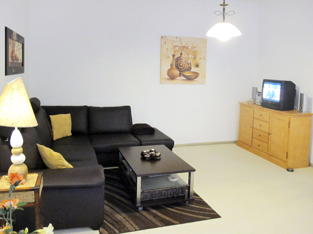 "Wildrose", 2-Zimmer-Wohnung 67 m2 im 1. Stock. Modern und stilvoll eingerichtet: Wohn-/Schlafzimmer mit 1 Diwanbett, Esstisch, Kabel-TV, Radio und CD. 1 Doppelzimmer. Küche (4 Kochplatten, Backofen, Geschirrspüler, Toaster, Wasserkocher, elektrische Kaffeemaschine). Dusche/WC. Ölheizung. Teppichboden. Zur Verfügung: Kinderhochstuhl, Babybett. Internet (Wireless LAN, gratis). Bitte beachten: Nichtraucher-Unterkunft. Maximal 1 kleines Haustier/Hund erlaubt. Rauchmelder, Feuerlöscher.