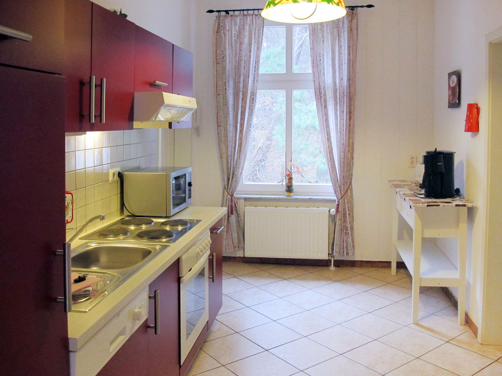 Appartementhaus "Villa Waldblume". 500 m vom Zentrum von Zempin, 3 km vom Zentrum von Zinnowitz, 13 km vom Zentrum von Wolgast, in einem Wohnquartier, 350 m vom Meer. Zur Mitbenutzung: Grundstück 400 m2 (eingezäunt), gepflegter Garten mit Rasen und Bäumen. Sitzplatz, Gartenmöbel. Im Hause: Wireless LAN, Einstellraum für Fahrräder. Parkplatz auf dem Grundstück. Supermarkt 400 m, Restaurant 200 m, Sandstrand 350 m. Wanderwege ab Haus 50 m. Einstellraum für Fahrräder ist nicht abschließbar.