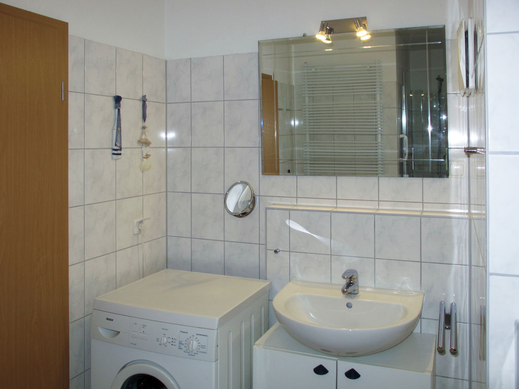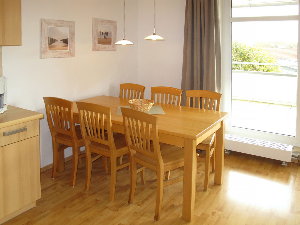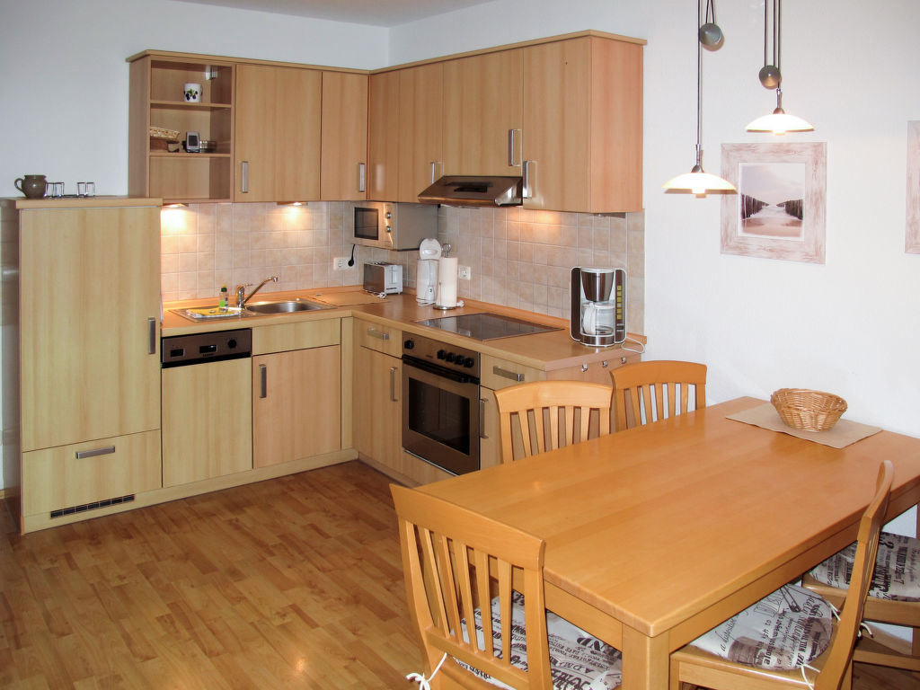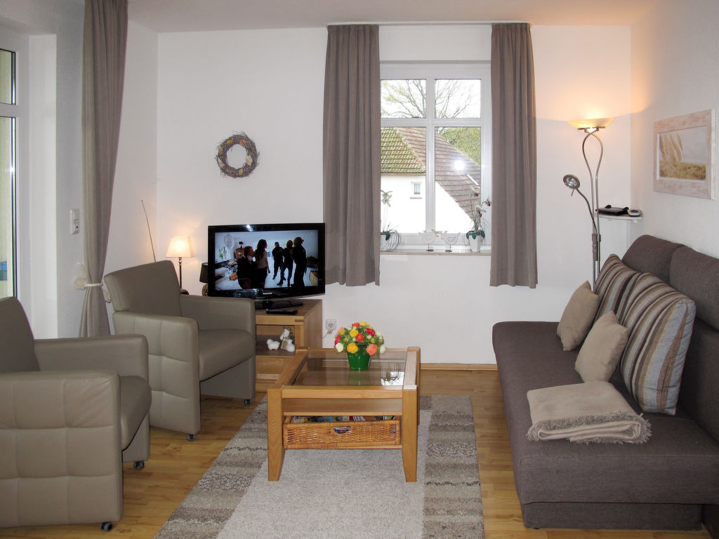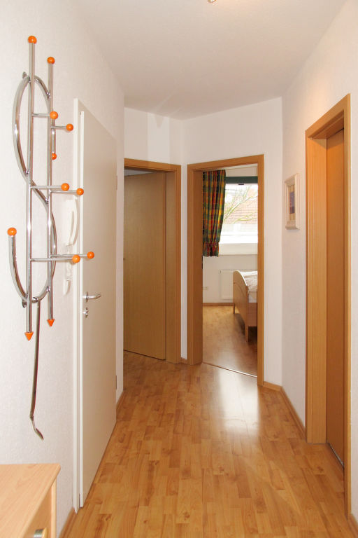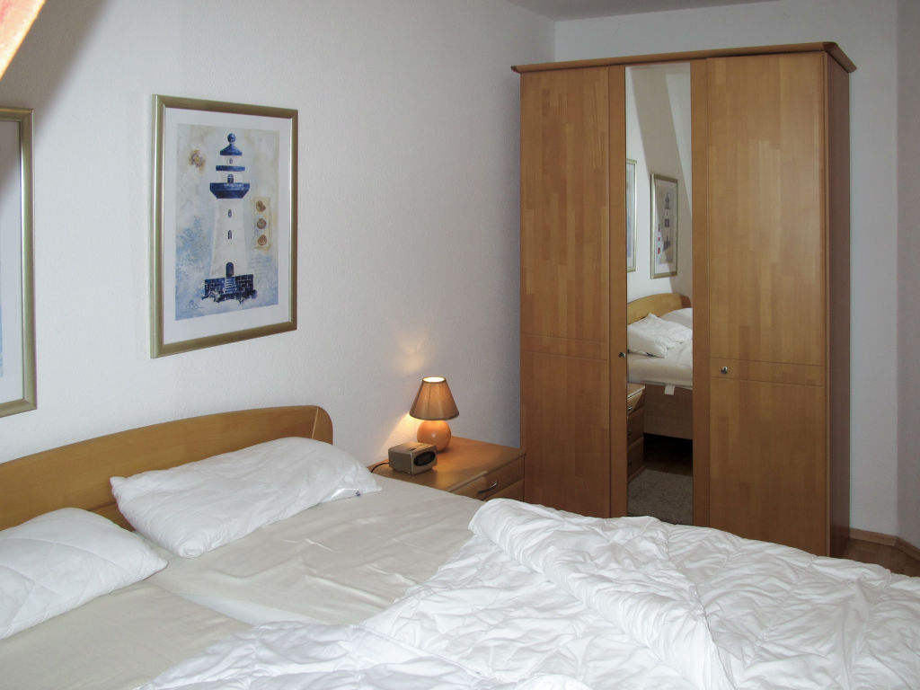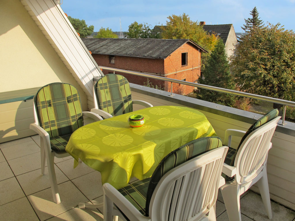 "Boddenblick", 3-Zimmer-Wohnung 63 m2 im 1. Stock. Komfortabel und geschmackvoll eingerichtet: Wohn-/Schlafzimmer mit 1 Diwanbett, Esstisch, Sat-TV, Radio, CD und DVD. Ausgang zum Balkon. 1 Zimmer mit 1 Doppelbett. 1 Zimmer mit 2 Betten. Offene Küche (Backofen, Geschirrspüler, 4 Glaskeramikherd Platten, Toaster, Wasserkocher, Mikrowelle, elektrische Kaffeemaschine). Dusche/WC. G-Heizung. Teppichboden. Balkon. Balkonmöbel, Abstellkammer. Sicht auf die Bucht. Zur Verfügung: Kinderhochstuhl, Babybett. Internet (Wireless LAN, gratis). Garage (1 Auto), Höhe 200 cm. Bitte beachten: Nichtraucher-Unterkunft. Rauchmelder, Feuerlöscher.