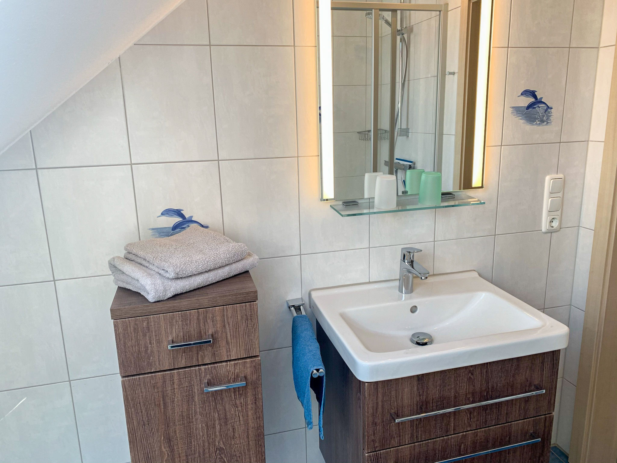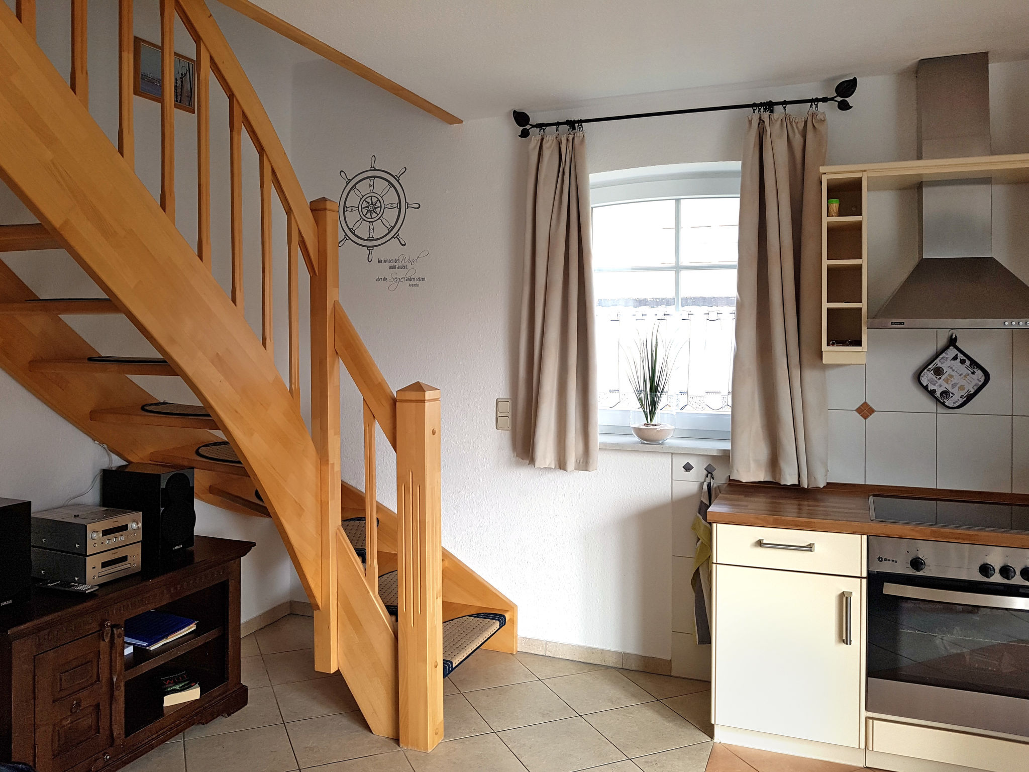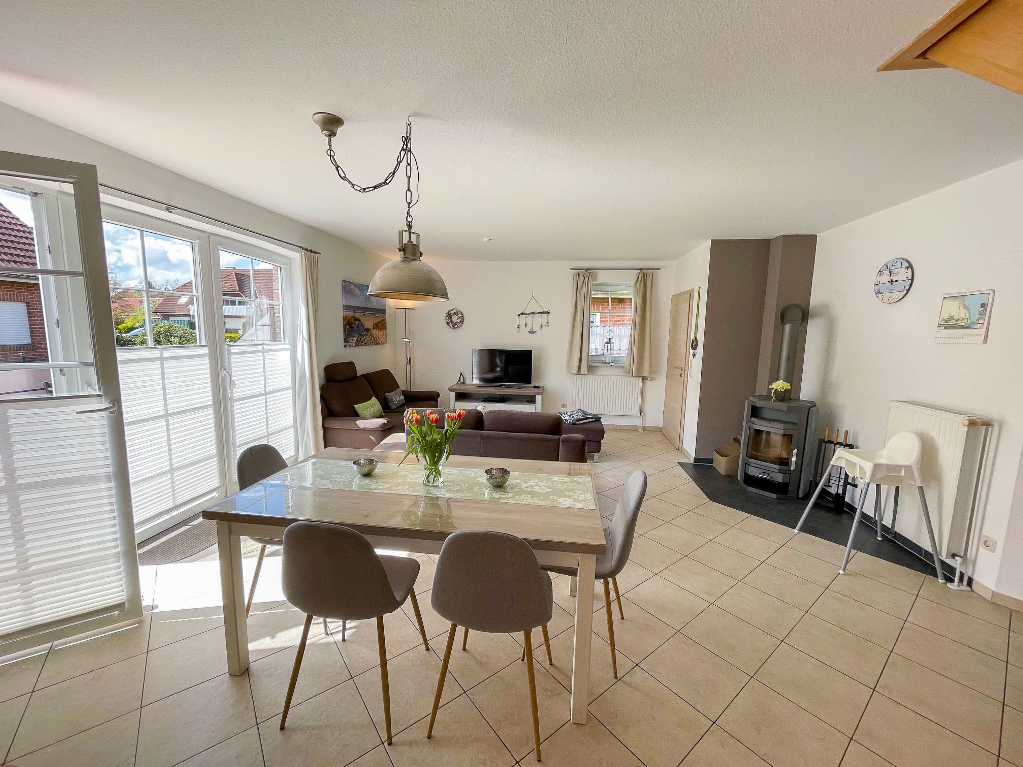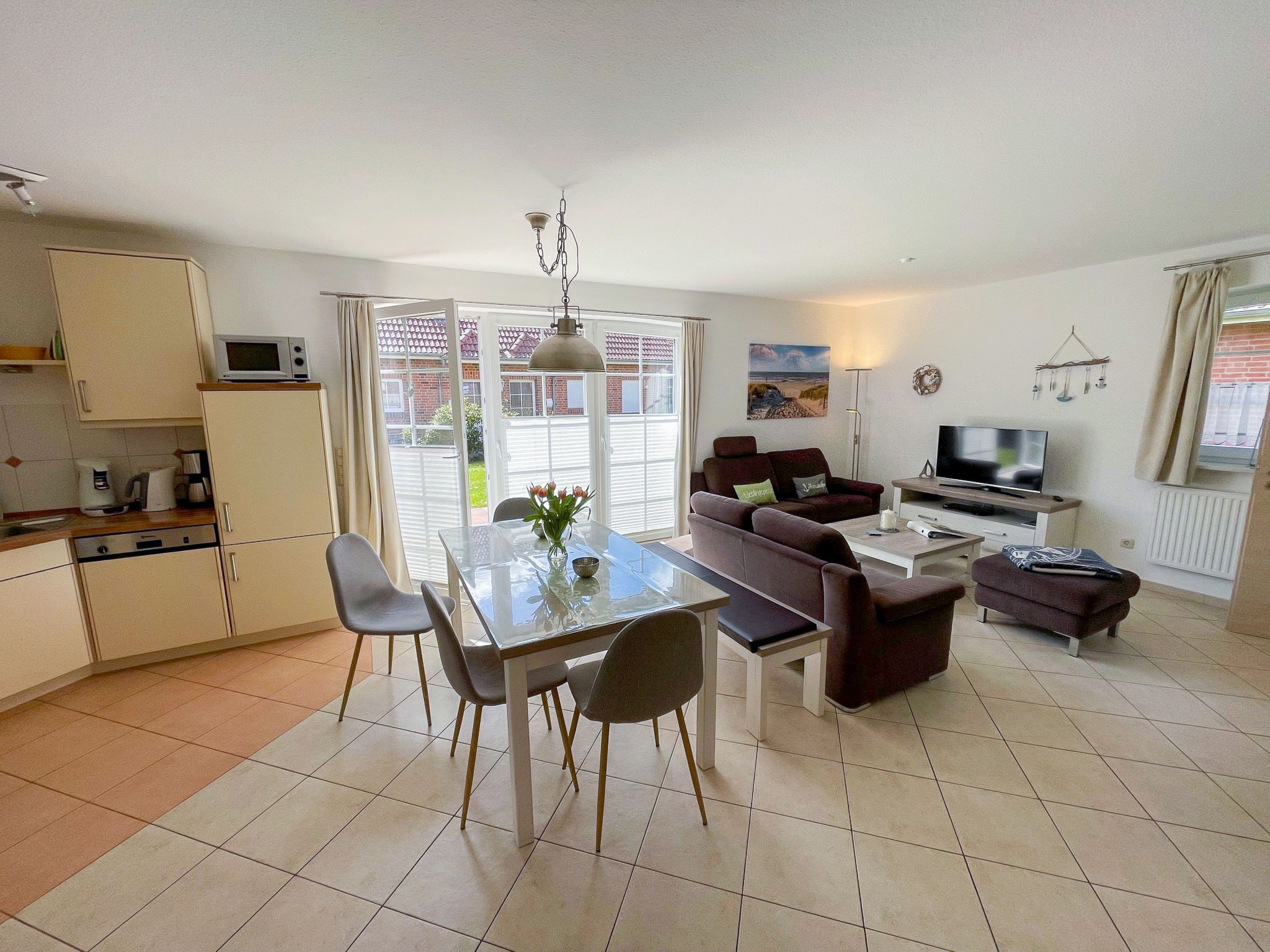 Gemütliches Einfamilienhaus "Friesenperle". Im Ort, 800 m vom Zentrum von Norden, 3.7 km vom Meer, 3.6 km vom Strand. Zur Alleinbenutzung: grosser Garten mit Rasen. Im Hause: Zentralheizung. Parkplatz beim Haus. Einkaufsgeschäft, Supermarkt 800 m, Restaurant 500 m, Bäckerei, Café 900 m, Bahnstation 2.7 km, Fähre 4.6 km, Sandstrand 3.6 km, Freibad 12 km, Hallenbad 3 km. Golfplatz (9 Loch) 6 km, Surfschule 3.5 km, Minigolf 3 km.