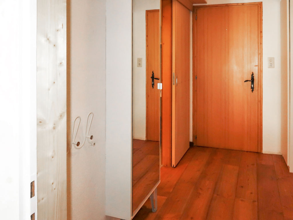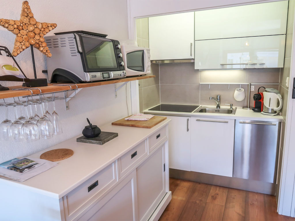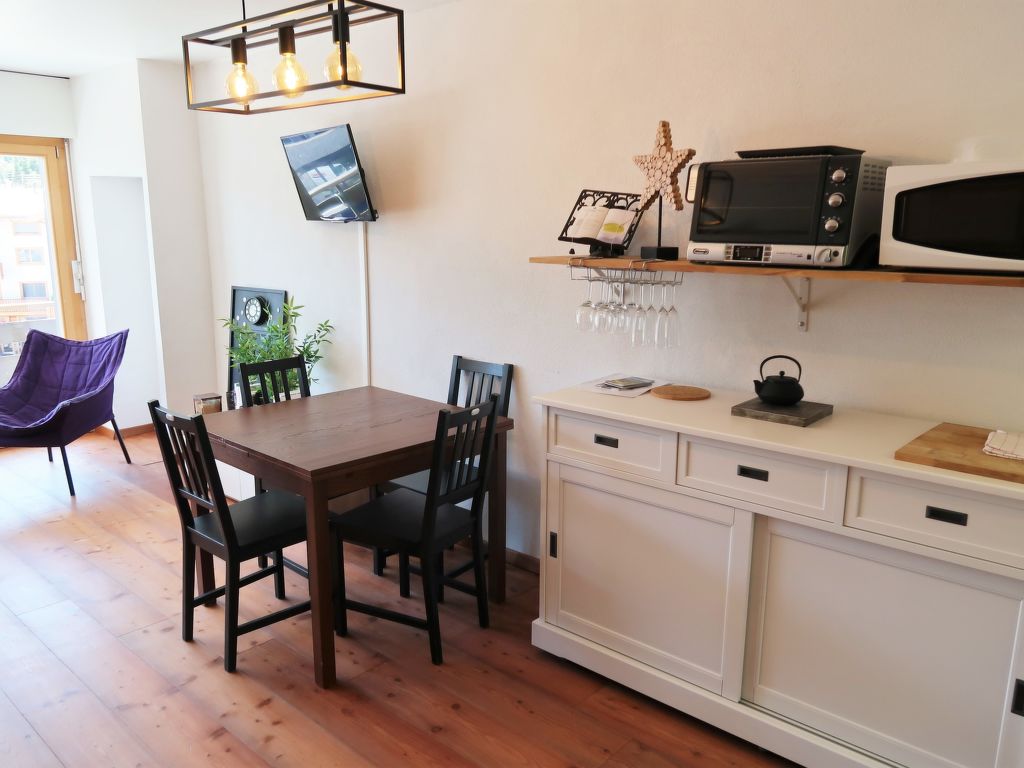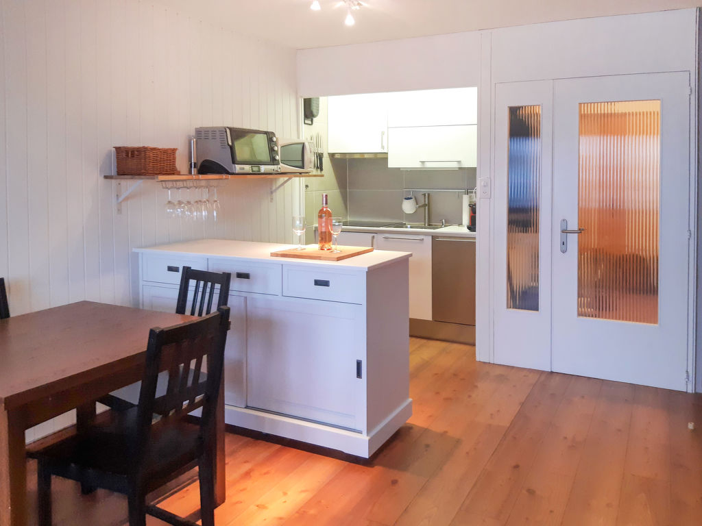 "Bouleaux B1", 1-Zimmer-Studio 31 m2 im 1. Stock. Objekt geeignet für 2 Erwachsene + 2 Kinder. Renoviert im Jahre 2020, schön und modern eingerichtet: Wohn-/Esszimmer mit 2 Wandschrankbetten (90 cm, Länge 190 cm), Kabel-TV. Eingang mit 1 x 2 Etagenbetten (80 cm, Länge 200 cm). Kochnische (Mini-Backofen, Geschirrspüler, 4 Glaskeramikherd Platten, Mikrowelle, elektrische Kaffeemaschine, Kapseln für die Kaffeemaschine (Nespresso) extra). Dusche/WC. Balkon, Ostlage. Balkonmöbel. Sicht auf die Berge und die Ortschaft. Zur Verfügung: Internet (Wireless LAN). Parkplatz Nr. 3. Bitte beachten: Nichtraucher-Unterkunft.