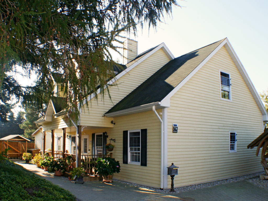 Appartementhaus "Seepferdchen", auf 2 Stockwerken. 4 Wohnungen in der Residenz. 800 m vom Zentrum von Zinnowitz, am Ortsrand, 10 km vom Zentrum von Wolgast, 38 km vom Zentrum von Greifswald, 1 km vom Meer, in einer Sackgasse. Zur Mitbenutzung: Grundstück 700 m2, gepflegter Garten (nicht eingezäunt) mit Rasen. Grill. Im Hause: Fahrräder vorhanden (extra). Supermarkt 200 m, Sandstrand 1 km. Fahrradabstellmöglichkeit (außen) vorhanden. Fahrräder können nicht in die Wohnung genommen werden.