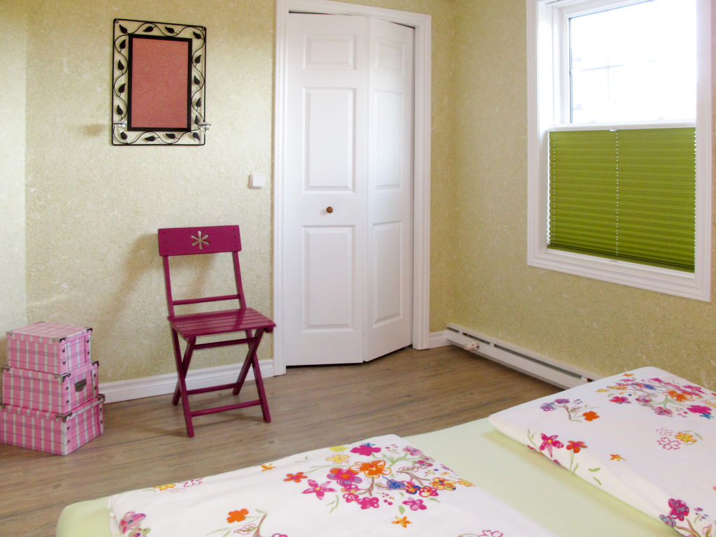 "Robbe", 2-Zimmer-Wohnung 50 m2 im 1. Stock. Komfortabel und stilvoll eingerichtet: Wohn-/Esszimmer mit Schwedenofen, Esstisch, Sat-TV, Radio und CD. Ausgang zum Balkon. 1 Zimmer mit 1 Doppelbett und 1 Klappbett. Offene Küche (Geschirrspüler, 4 Glaskeramikherd Platten, Toaster, Wasserkocher, elektrische Kaffeemaschine). Dusche/WC. G-Heizung. Balkon. Balkonmöbel. Zur Verfügung: Waschmaschine. Internet (Wireless LAN, gratis). Parkplatz (1 Auto). Bitte beachten: Nichtraucher-Unterkunft. Rauchmelder. Hochwertige, allergikerfreundliche Einrichtung der Schlafzimmer, individuelle Härtegradeinstellung der Matratzen möglich.