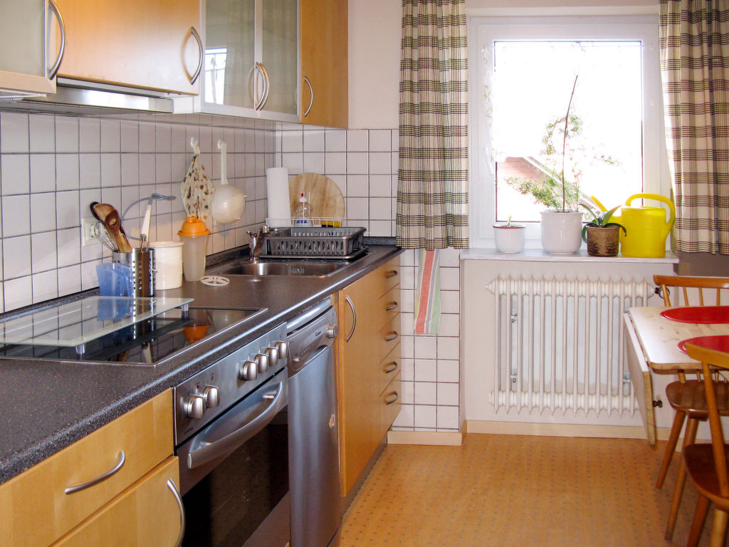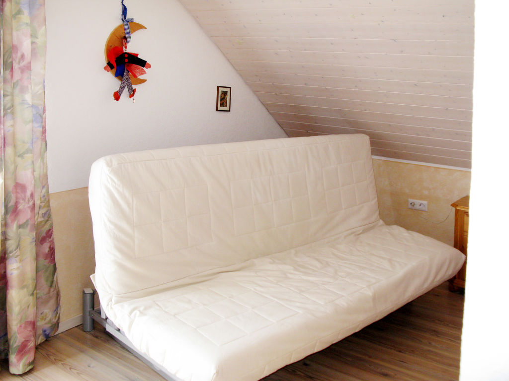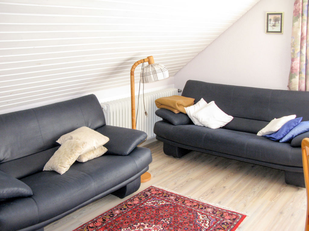 "Schleuniger", 3-Zimmer-Wohnung 55 m2 im 1. Stock. Einfach und gemütlich eingerichtet: Wohn-/Esszimmer mit Sat-TV. Ausgang zum Balkon. 1 Doppelzimmer. 1 Zimmer mit 1 Doppeldiwanbett (140 cm, Länge 190 cm). Ausgang zum Balkon. Küche (Backofen, Geschirrspüler, 4 Glaskeramikherd Platten, Toaster, Wasserkocher, Mikrowelle, elektrische Kaffeemaschine) mit Esstisch. Dusche/WC. Ölheizung. Balkon. Balkonmöbel. Zur Verfügung: Kinderhochstuhl, Babybett. Internet (Wireless LAN, extra). Bitte beachten: Nichtraucher-Unterkunft.