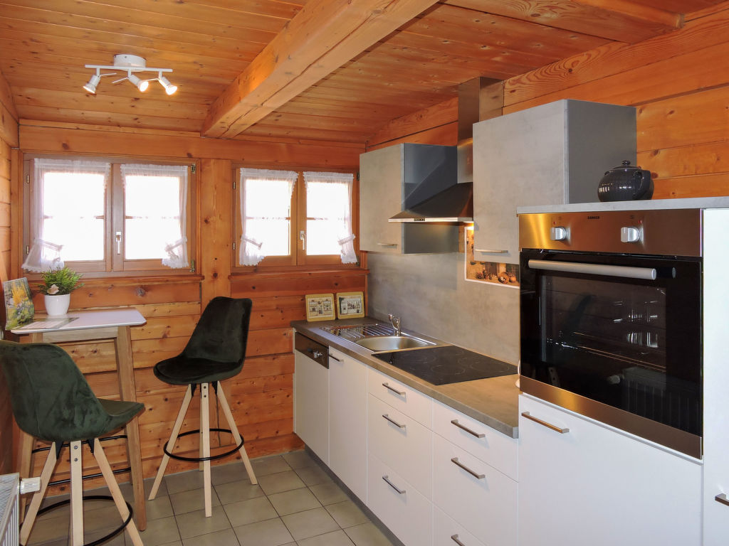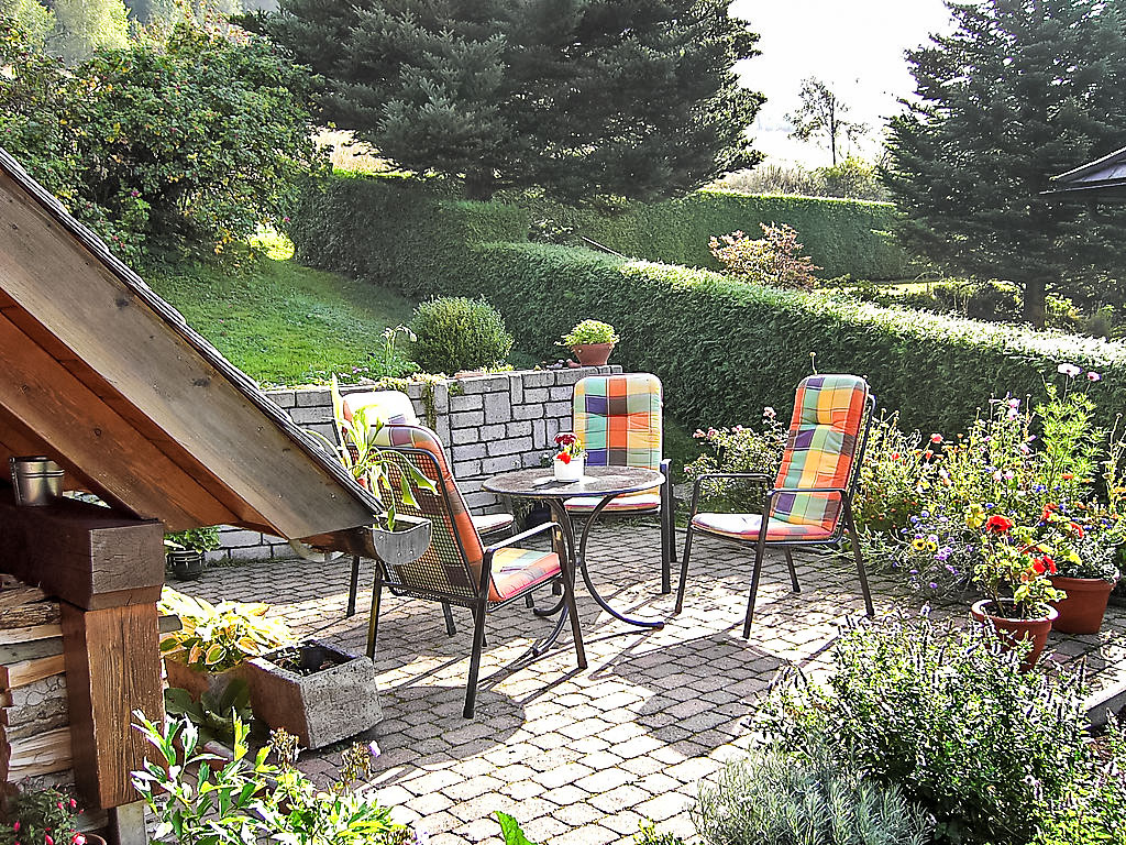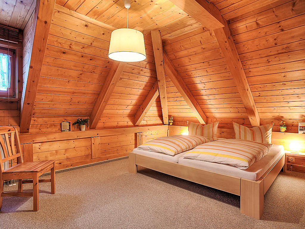 2-Zimmer-Wohnung 70 m2, im Obergeschoss. Teilweise abgeschrägt, komfortabel und mit viel Holz eingerichtet: Wohn-/Esszimmer mit Sat-TV (Flachbildschirm), Stereoanlage. Ausgang zum Balkon. 1 Doppelzimmer. Küche (Backofen, Geschirrspüler, elektrische Kaffeemaschine) mit Esstisch. Dusche/WC. Balkon 4 m2, Gartensitzplatz 15 m2. Terrassenmöbel. Panoramasicht auf die Berge und die Landschaft. Zur Verfügung: Bügeleisen, Kinderhochstuhl. Internet (Wireless LAN, gratis). Bitte beachten: Nichtraucher-Unterkunft. Bei Reservierung der Zusatzbetten (extra) erhalten Sie ein separates Doppelzimmer mit WC ausserhalb der Wohnung (auf der gleichen Etage).