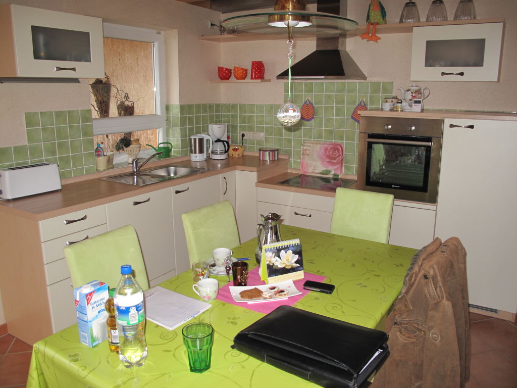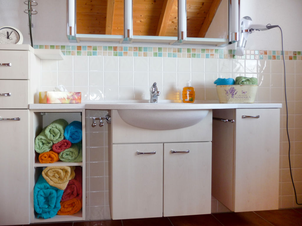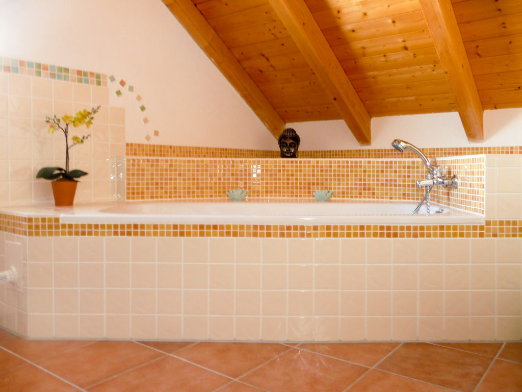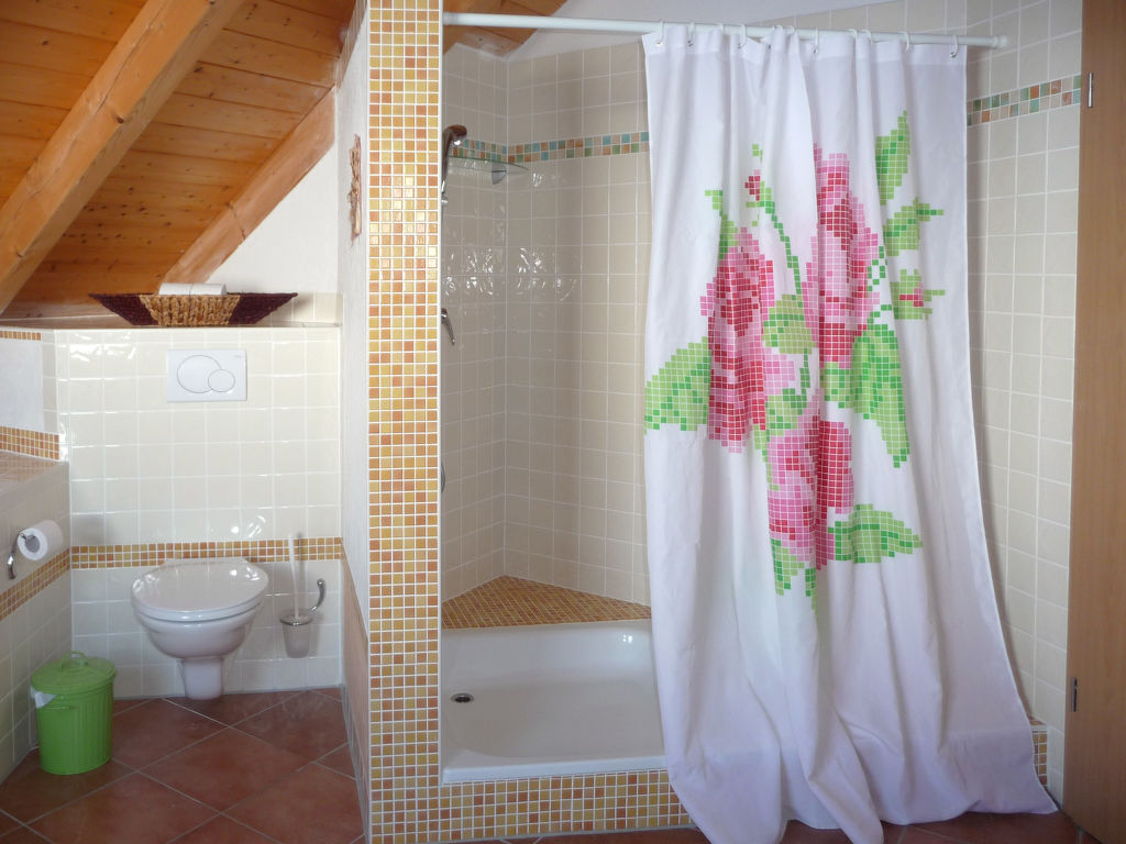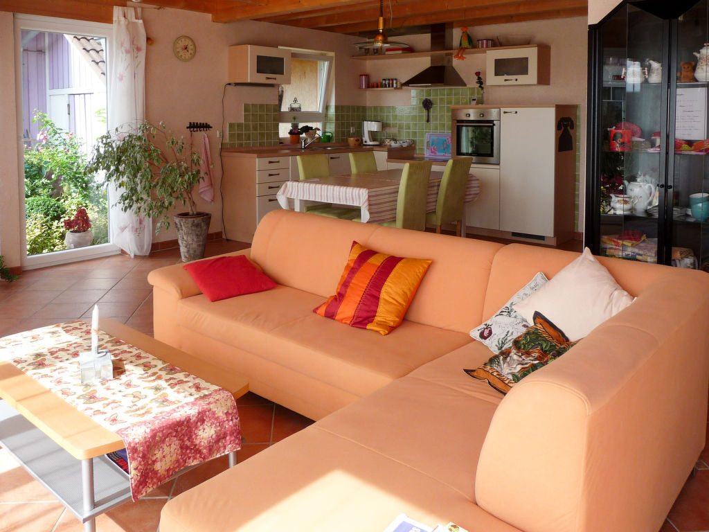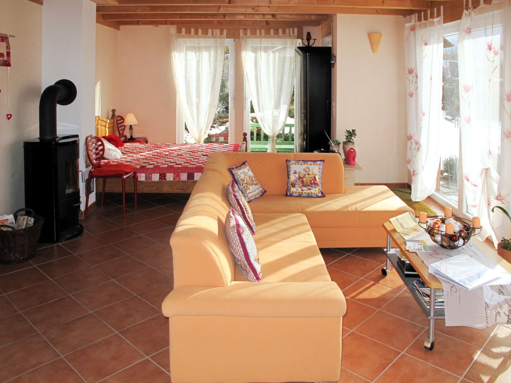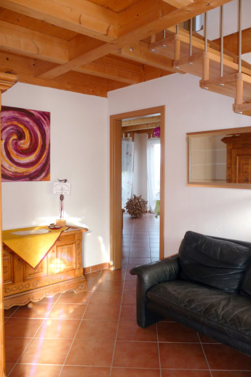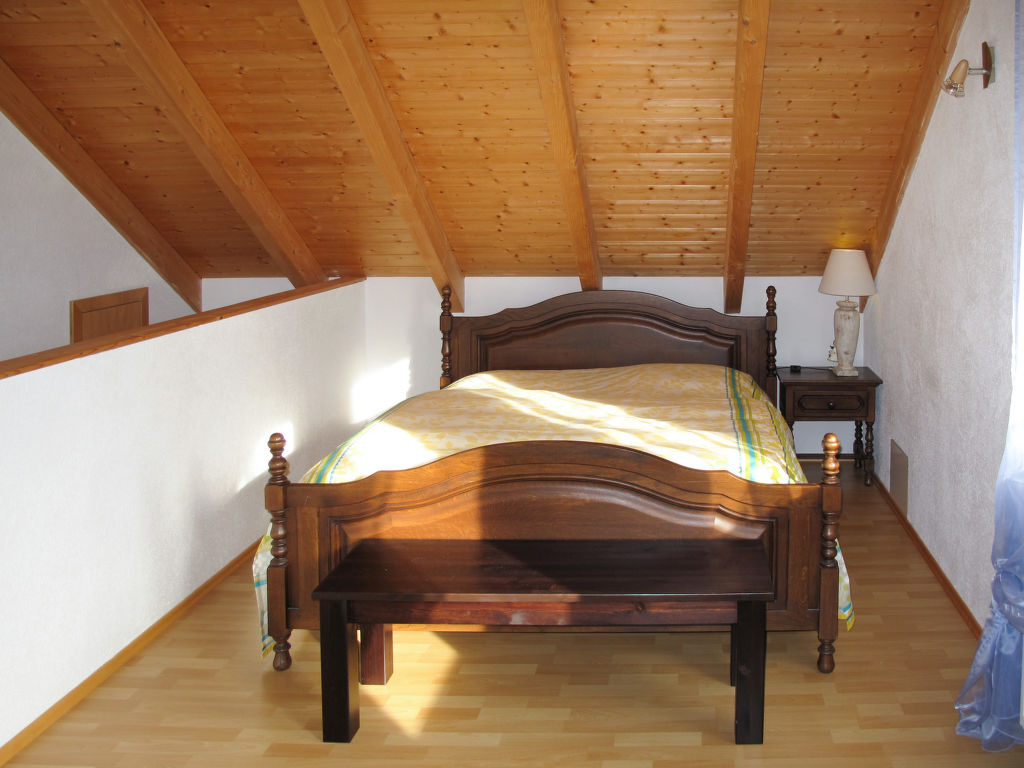 2-Zimmer-Haus 100 m2 auf 2 Stockwerken. Objekt geeignet für 4 Erwachsene + 2 Kinder. Gemütlich eingerichtet: Wohn-/Schlafzimmer mit 1 Doppelbett, Sat-TV und DVD. Ausgang zur Terrasse. Offene Küche (Backofen, Geschirrspüler, 4 Glaskeramikherd Platten, elektrische Kaffeemaschine) mit Esstisch. Sep. WC. Obergeschoss: 1 abgeschrägtes, offenes Zimmer mit 1 Doppeldiwanbett (140 cm), 1 Doppelbett und Bad/Dusche/WC. Ausgang zum Balkon. G-Heizung, Fussbodenheizung. Terrasse. Terrassenmöbel, Gartengrill, Liegestühle. Zur Verfügung: Kinderhochstuhl, Babybett. Internet (Wireless LAN, gratis). Bitte beachten: Nichtraucher-Unterkunft. Rauchmelder, Feuerlöscher.