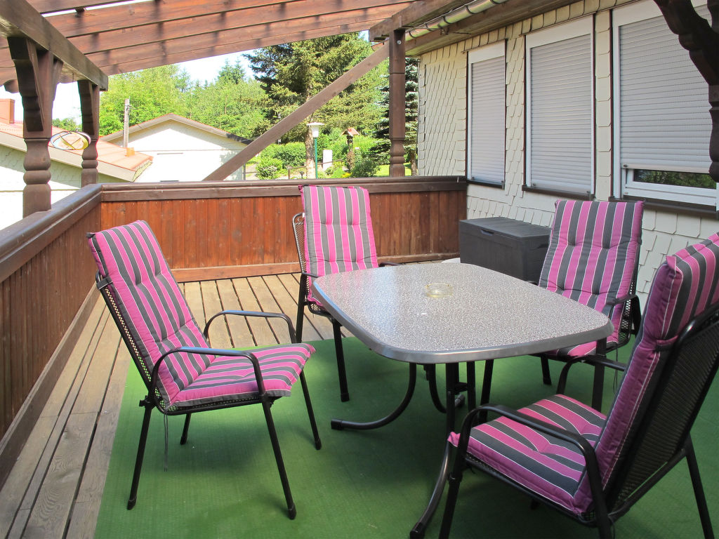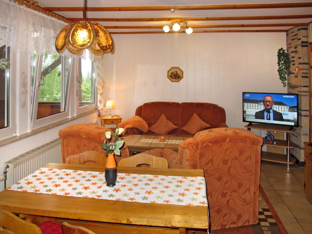 Kleine Ferienanlage "Aurora". 4 Häuser im Ferienresort. 1 km vom Zentrum von Steinbach-Hallenberg, am Ortsrand, 15 km vom Zentrum von Oberhof, 30 km vom Zentrum von Meiningen, am Hang, direkt am Waldrand. Zur Mitbenutzung: Grundstück 1'500 m2, gepflegter Garten mit Rasen. Sitzplatz, Gartenmöbel, Grill, Kinderspielplatz. Steile Zufahrt bis 100 m zum Haus. Zentralparkplätze. Supermarkt 1 km, Restaurant 400 m, Bahnstation "Steinbach-Hallenberg" 2 km, Freibad 600 m. Wanderwege ab Haus, Radweg 50 m. Bitte beachten: Das Foto ist nur ein Hausbeispiel.