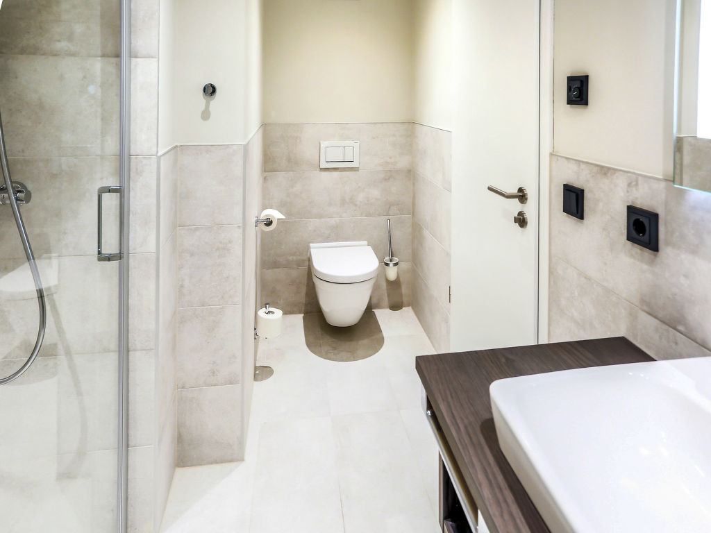 Moderne Ferienanlage "Maremüritz Yachthafen Resort", Baujahr 2019. 184 Wohnungen in der Residenz. 2 km vom Zentrum von Waren, am Ortsrand, 97 km vom Zentrum von Schwerin, 100 km vom Zentrum von Rostock, 80 m vom See, direkter Zugang zum Strand. Zur Mitbenutzung: Grundstück mit Rasen, Schwimmbad (15 x 6 m, saisonale Verfügbarkeit: 01.Mai.-30.Sep., extra). Privatstrand, Kinderspielplatz. In der Anlage: Empfang, Restaurant, Sauna (extra). Fitnessraum (extra). Wellnessbereich zur Mitbenutzung (extra), Fahrstuhl, Waschmaschine (zur Mitbenutzung, extra). Frühstück möglich (extra). Abstellraum vorhanden. Treppenweg bis zum Haus. Gemeinschaftsgarage (extra). Einkaufsgeschäft 2 km, Supermarkt 2.5 km, Grasstrand 80 m. Jacht-Hafen 2 km, Golfplatz (18 Loch) 22 km.