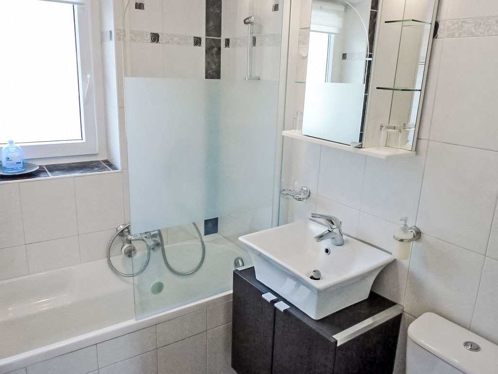 "Panorama", 3-Zimmer-Wohnung 65 m2 im 1. Stock. Wohn-/Esszimmer mit Sat-TV (Flachbildschirm), CD. Ausgang zum Balkon. 1 Zimmer mit 2 Betten und Sat-TV. 1 Doppelzimmer. Küche (Backofen, Geschirrspüler, 4 Glaskeramikherd Platten, Mikrowelle, elektrische Kaffeemaschine). Bad/Dusche/WC. Balkonmöbel. Schöne Panoramasicht auf die Berge. Zur Verfügung: Kinderhochstuhl. Internet (Wireless LAN). Bitte beachten: Nichtraucher-Unterkunft.