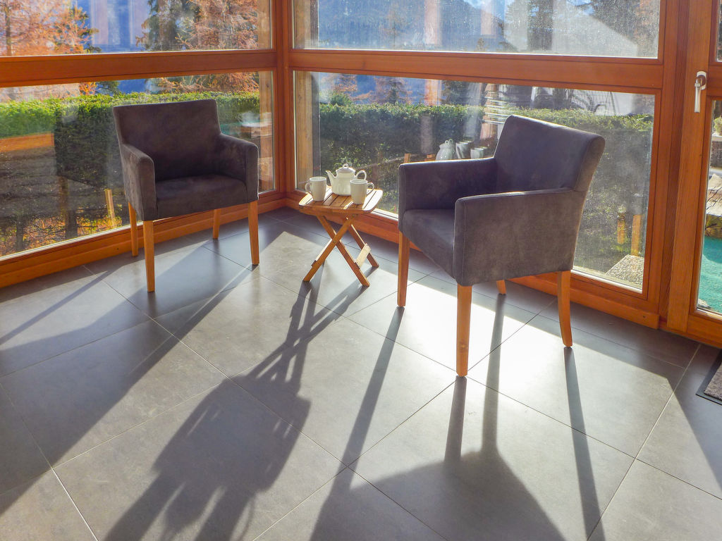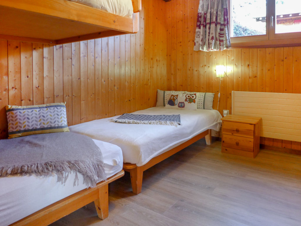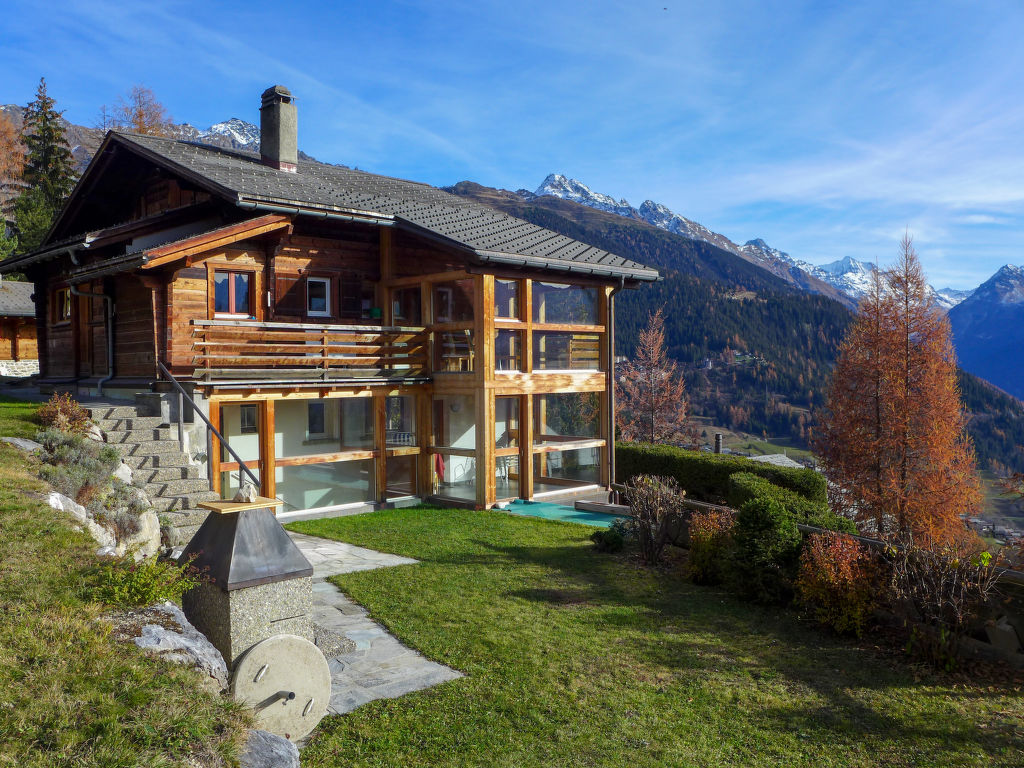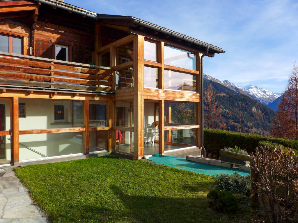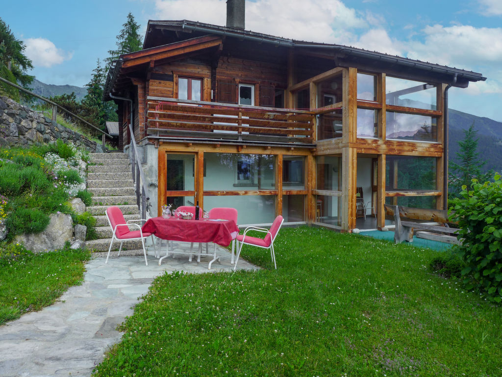 "Haimavati", 3-Zimmer-Wohnung im Erdgeschoss, Südlage. Teilweise renoviert im Jahre 2019, zweckmässig und schön eingerichtet: Wohn-/Esszimmer mit offenem Kamin. Ausgang zum Garten. 1 Zimmer mit 1 franz. Bett (1 x 160 cm, Länge 200 cm). 1 Zimmer mit 2 Betten (90 cm, Länge 200 cm). Kochnische (Backofen, 3 Glaskeramikherd Platten, Mikrowelle, Fondue Set (Käse)). Bad. Terrassenmöbel, Gartengrill, Wintergarten. Panoramasicht auf die Berge und das Tal. Bitte beachten: Nichtraucher-Unterkunft.