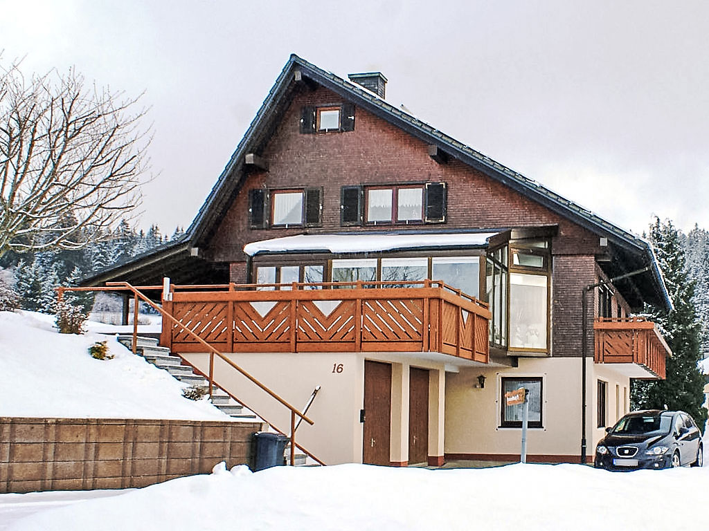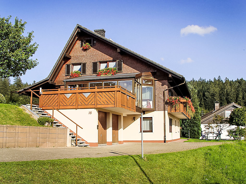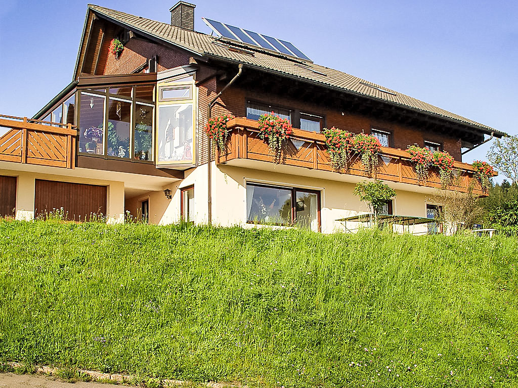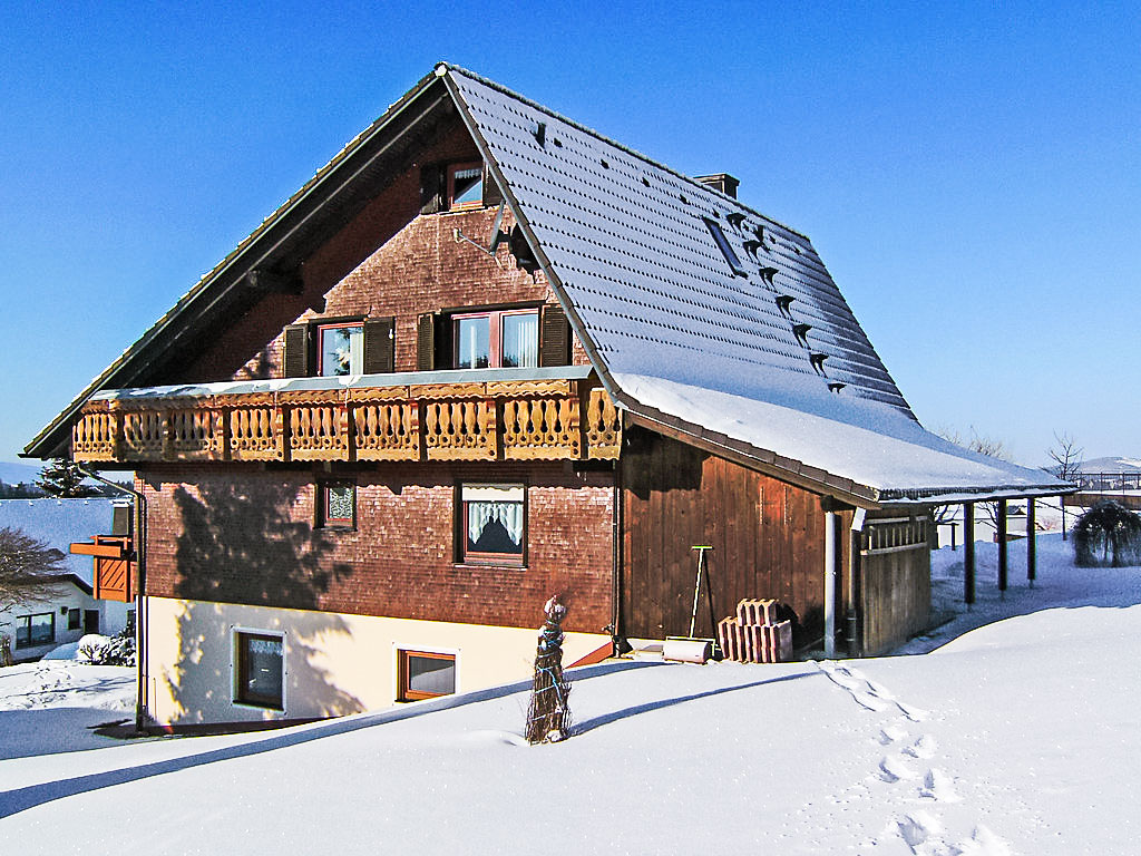 Neukirch 6 km von Furtwangen: Einfamilienhaus "Hoch". Am Ortsrand, ruhige, sonnige Lage, im Grünen. Zur Alleinbenutzung: Liegewiese. Im Hause: Zentralheizung. Parkplatz beim Haus, Einzelgarage (extra). Lebensmittelgeschäft 6 km, Supermarkt 6 km, Restaurant 200 m, Bäckerei, Bushaltestelle 250 m, Bahnstation "Triberg" 20 km, Freibad 5 km, Hallenbad 15 km. Golfplatz 12 km, Tennis 5 km, Wanderwege ab Haus, Radweg 10 m, Langlaufloipe 20 m.