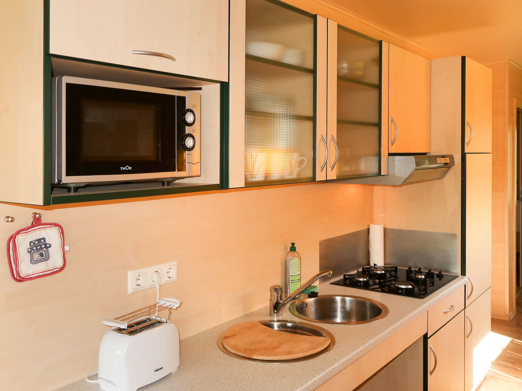 2-Zimmer-Bungalow 50 m2. Modern eingerichtet: Wohn-/Schlafzimmer mit 1 Doppeldiwanbett, Esstisch, Sat-TV und Radio. Ausgang zur Terrasse. 1 Zimmer mit 1 Doppelbett. Offene Küche (4 Flammen, Toaster, Wasserkocher, Mikrowelle, elektrische Kaffeemaschine). Dusche/WC. G-Heizung. Terrasse. Terrassenmöbel. Zur Verfügung: Kinderhochstuhl, Babybett. Internet (Wireless LAN, gratis). Bitte beachten: Nichtraucher-Unterkunft. 1 Haustier/Hund erlaubt. Rauchmelder, Feuerlöscher. Der Bungalow ist barrierefrei und rollstuhlgerecht eingerichtet.