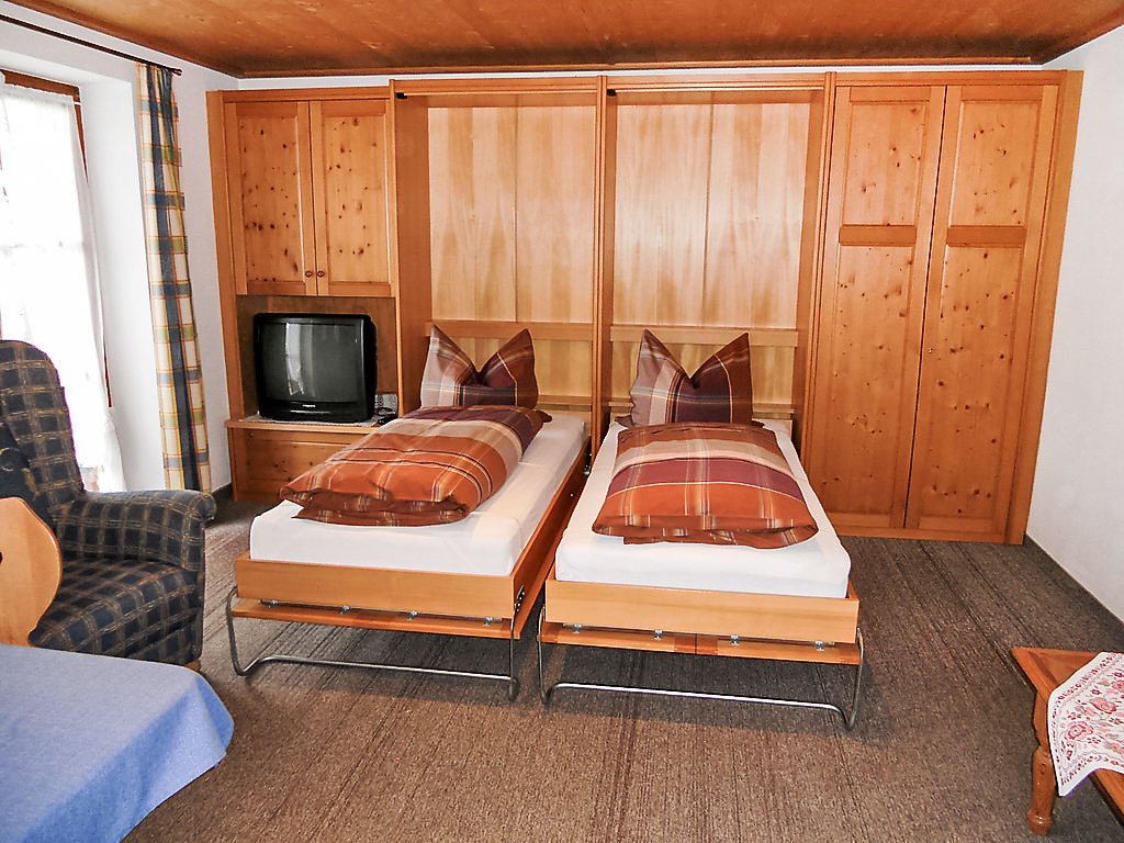2-Zimmer-Wohnung 55 m2 im 1. Stock. Gemütlich eingerichtet: Wohn-/Esszimmer mit 2 Wandschrankbetten (90 cm, Länge 200 cm), Kabel-TV und Radio. Ausgang zum Balkon. 1 Doppelzimmer. Küche (4 Kochplatten, Backofen, elektrische Kaffeemaschine). Dusche/WC. Balkonmöbel. Herrliche Panoramasicht auf die Berge und die Landschaft. Zur Verfügung: Haartrockner. Internet (Wireless LAN, gratis). Bitte beachten: Nichtraucher-Unterkunft.