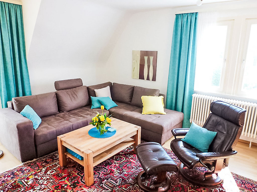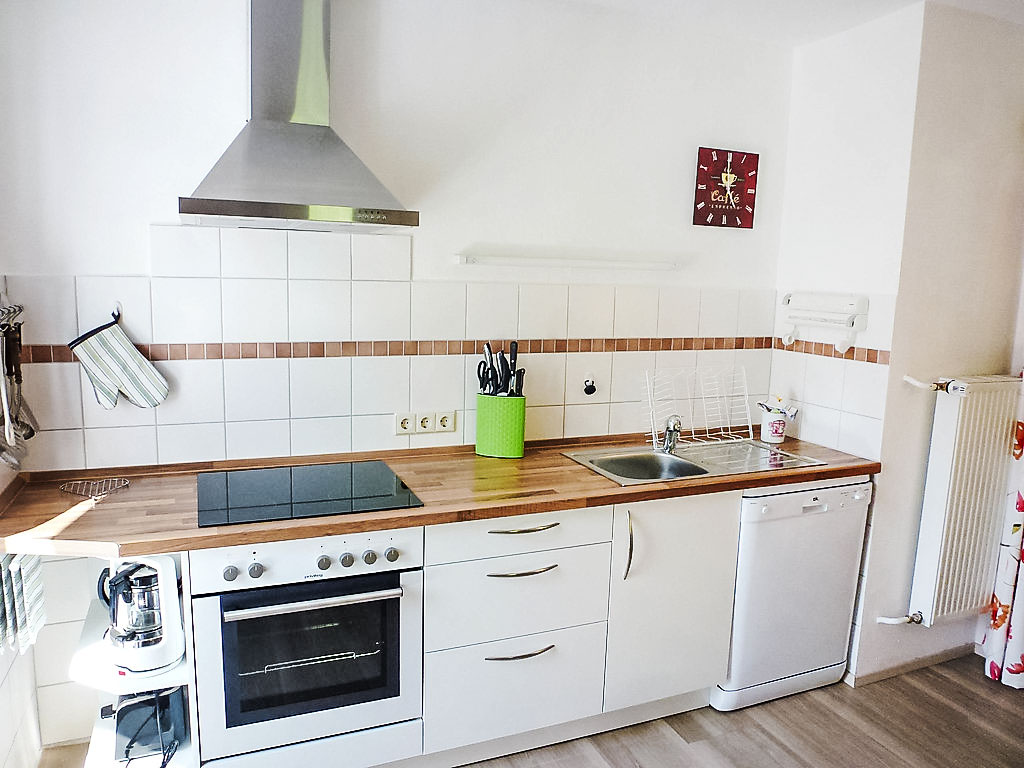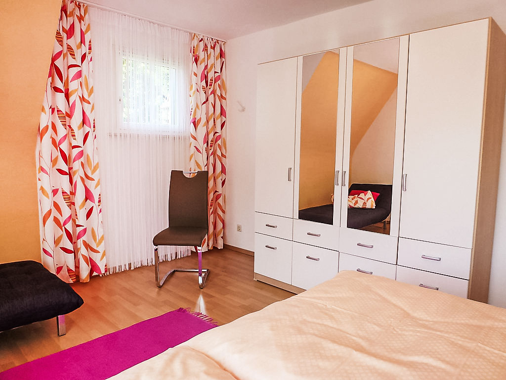 2-Zimmer-Wohnung 67 m2, im Obergeschoss. Hell, stilvoll eingerichtet: Wohn-/Schlafzimmer mit 1 Doppeldiwanbett (140 cm, Länge 220 cm), Kabel-TV (Flachbildschirm), Radio. Ausgang zur Terrasse. 1 grosses Doppelzimmer. Küche (Backofen, Geschirrspüler, 4 Glaskeramikherd Platten, Mikrowelle, elektrische Kaffeemaschine) mit Esstisch. Ausgang zur Terrasse. Bad/WC. Grosse Terrasse 15 m2, Gartensitzplatz. Terrassenmöbel. Schöne Sicht auf das Tal und das Städtchen. Zur Verfügung: Haartrockner. Internet (Wireless LAN, extra). Bitte beachten: Nichtraucher-Unterkunft. 1 Haustier/Hund erlaubt. Katzen als Haustiere sind nicht erlaubt. Die Terrasse ist eine grosszügige Dachterrasse.