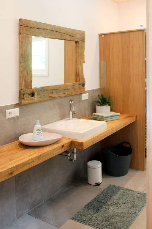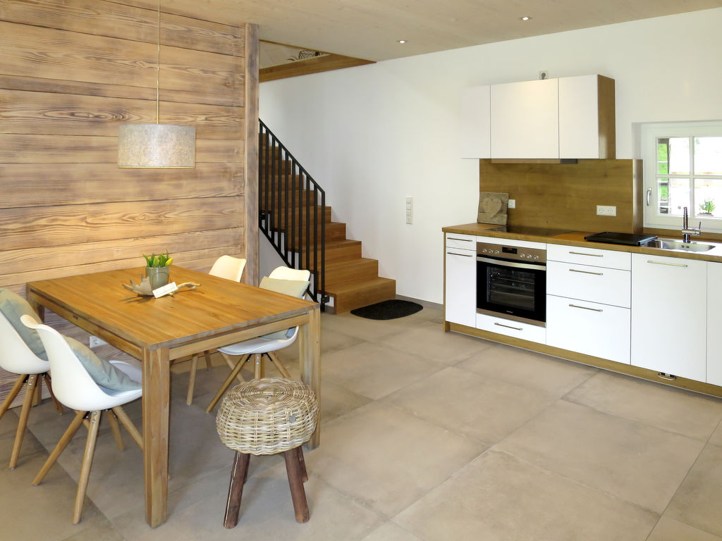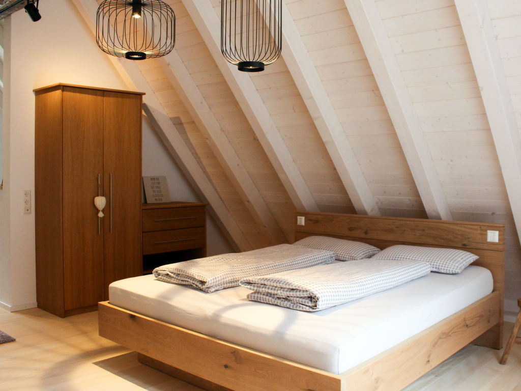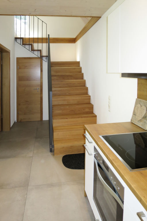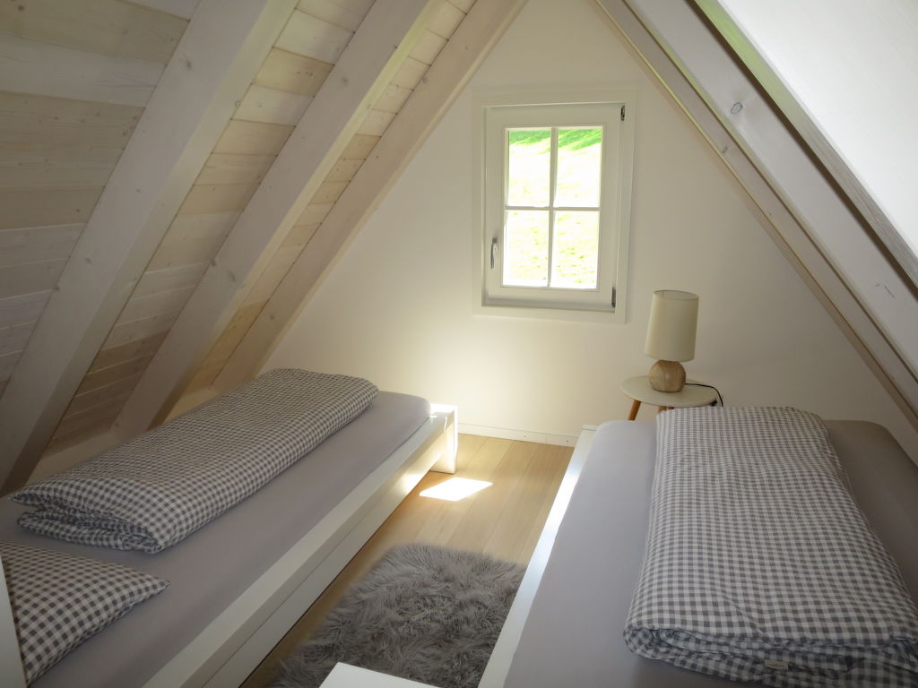 3-Zimmer-Haus 70 m2 auf 2 Stockwerken. Geschmackvoll und mit viel Holz eingerichtet: Wohn-/Esszimmer mit Sat-TV und Klimaanlage. Ausgang zur Terrasse. Offene Küche (Backofen, Geschirrspüler, 4 Glaskeramikherd Platten, Toaster, Wasserkocher, elektrische Kaffeemaschine). Dusche/WC. Heizung nicht in allen Räumen. Obergeschoss: abgeschrägtes, offenes Durchgangszimmer mit 1 Doppelbett. 1 abgeschrägtes kleines Zimmer mit 2 Betten. Holzböden. Terrasse 15 m2 teilweise überdacht, Gartensitzplatz. Terrassenmöbel, Gartengrill (mobil), Liegestühle (4). Zur Verfügung: Kinderhochstuhl, Haartrockner. Internet (Wireless LAN, gratis). Bitte beachten: Nichtraucher-Haus. Rauchmelder.