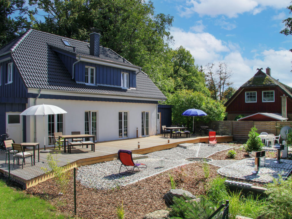 "Boddenruhe", 3-Zimmer-Doppelhaushälfte 75 m2 auf 3 Stockwerken. Hell, geschmackvoll eingerichtet: Wohn-/Esszimmer mit Schwedenofen, Esstisch, Sat-TV, Radio, CD und DVD. Ausgang zur Terrasse. Offene Küche (Backofen, Geschirrspüler, 4 Glaskeramikherd Platten, Toaster, Wasserkocher, Grill, elektrische Kaffeemaschine) mit Essecke. Dusche/WC. Obergeschoss: abgeschrägtes Wohn-/Schlafzimmer mit 1 Doppeldiwanbett und Sat-TV. 1 abgeschrägtes Doppelzimmer. Dusche/WC, Doppelwaschbecken. Fussbodenheizung. Dachgeschoss: 1 abgeschrägtes Kinderzimmer, Deckenhöhe 80 - 180 cm mit 1 Bett. Terrasse. Terrassenmöbel, Gartengrill, Abstellkammer. Zur Verfügung: Waschmaschine, Wäschetrockner, Safe, Bügeleisen, Kinderhochstuhl, Babybett. Internet (Wireless LAN, gratis). Parkplatz (2 Autos). Bitte beachten: Nichtraucher-Haus. Rauchmelder, Feuerlöscher.