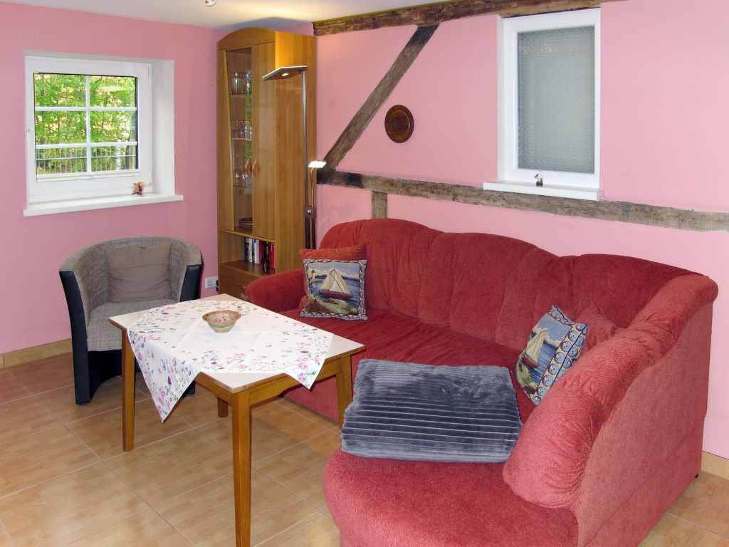 Schönes Doppelhaus "Kiebitz", umgeben von Bäumen und Wiesen. 2 km vom Zentrum von Lieschow, am Ortsrand, 4.5 km vom Zentrum von Waase, 7 km vom Zentrum von Gingst. Zur Mitbenutzung: Grundstück 3'800 m2 (eingezäunt) mit Rasen, Parkplatz auf dem Grundstück. Supermarkt 7 km, Sandstrand "Juliusruh" 36 km, Badebucht 4 km. Besitzer wohnt in separatem Hausteil.